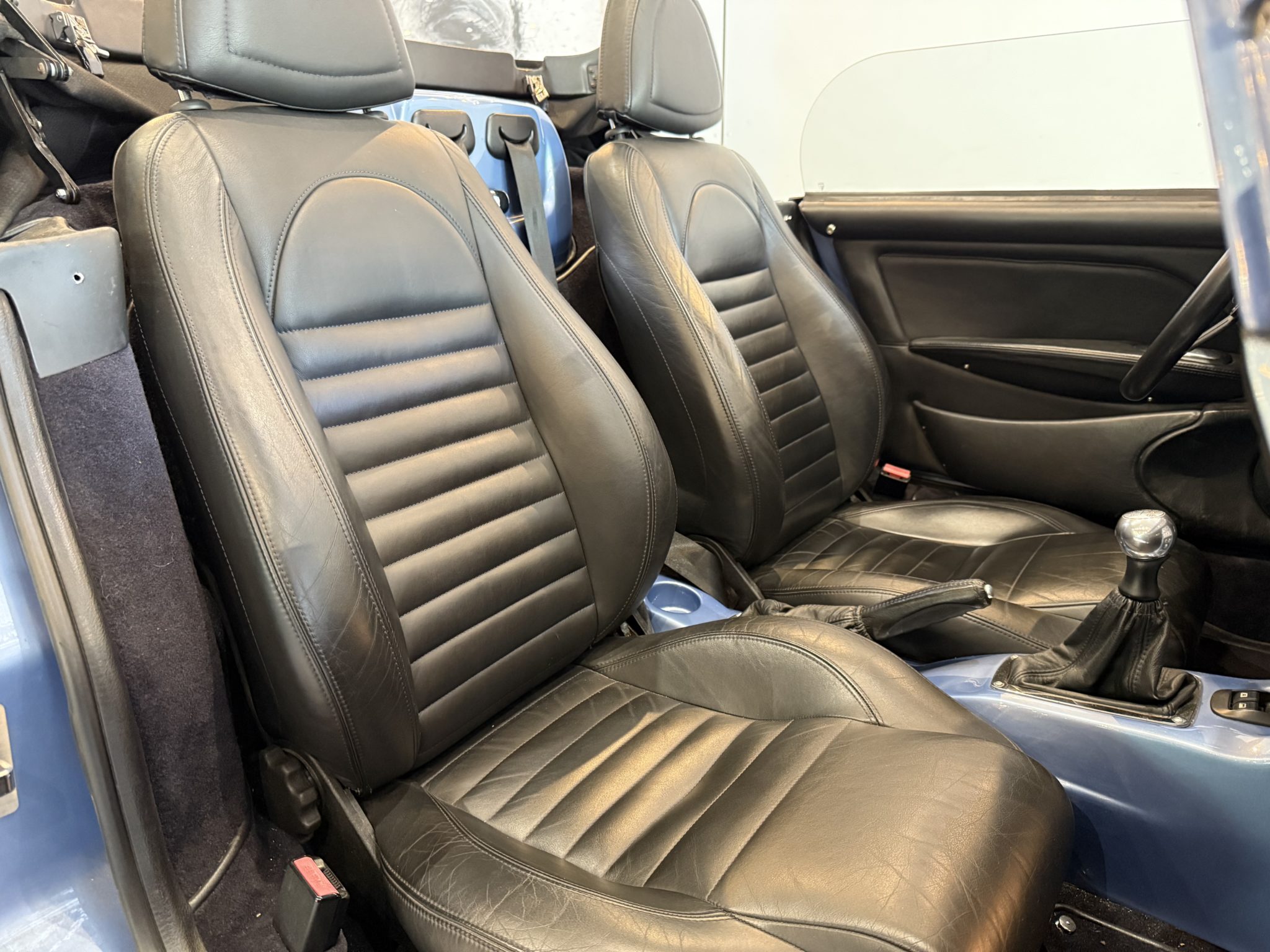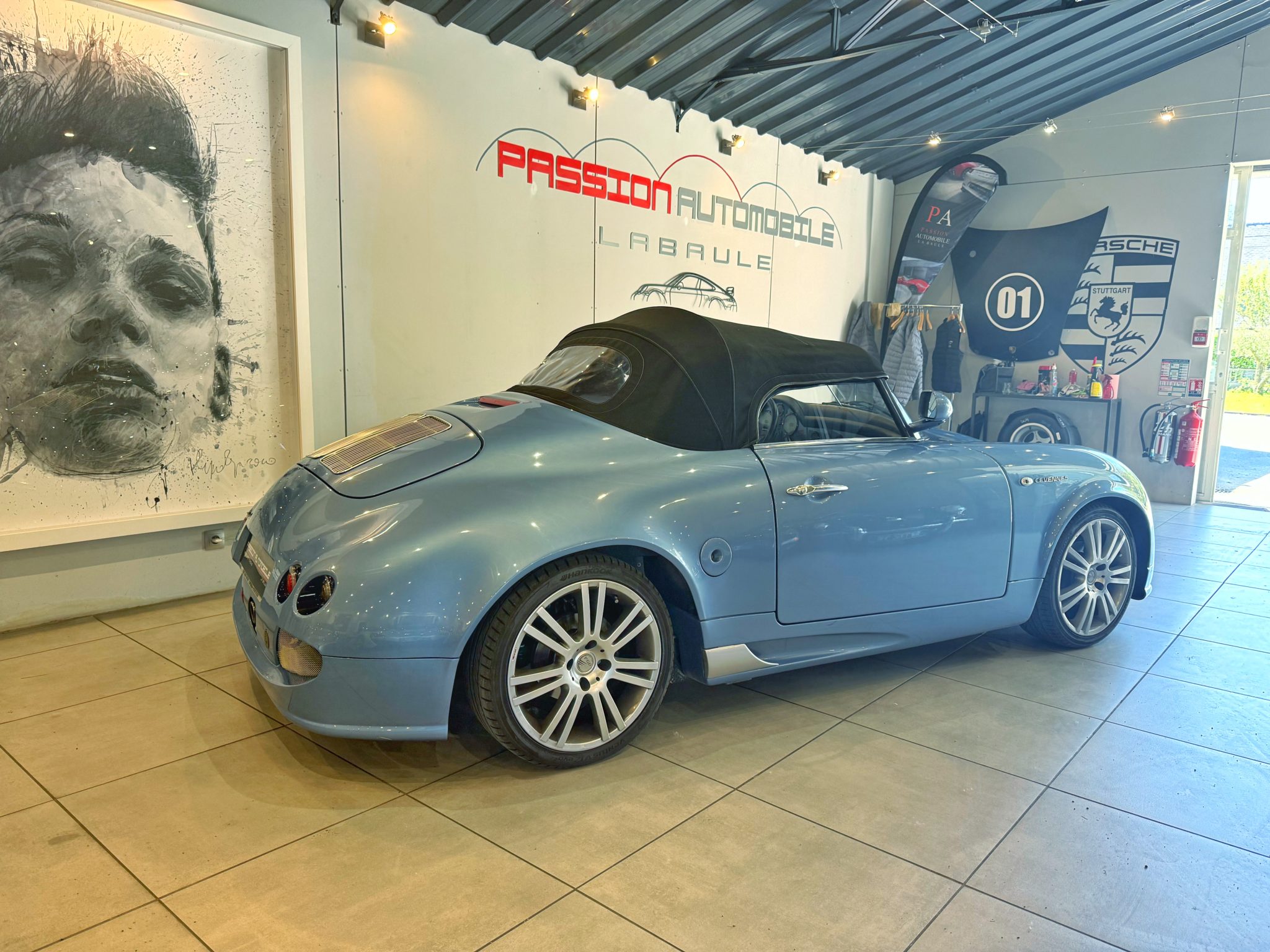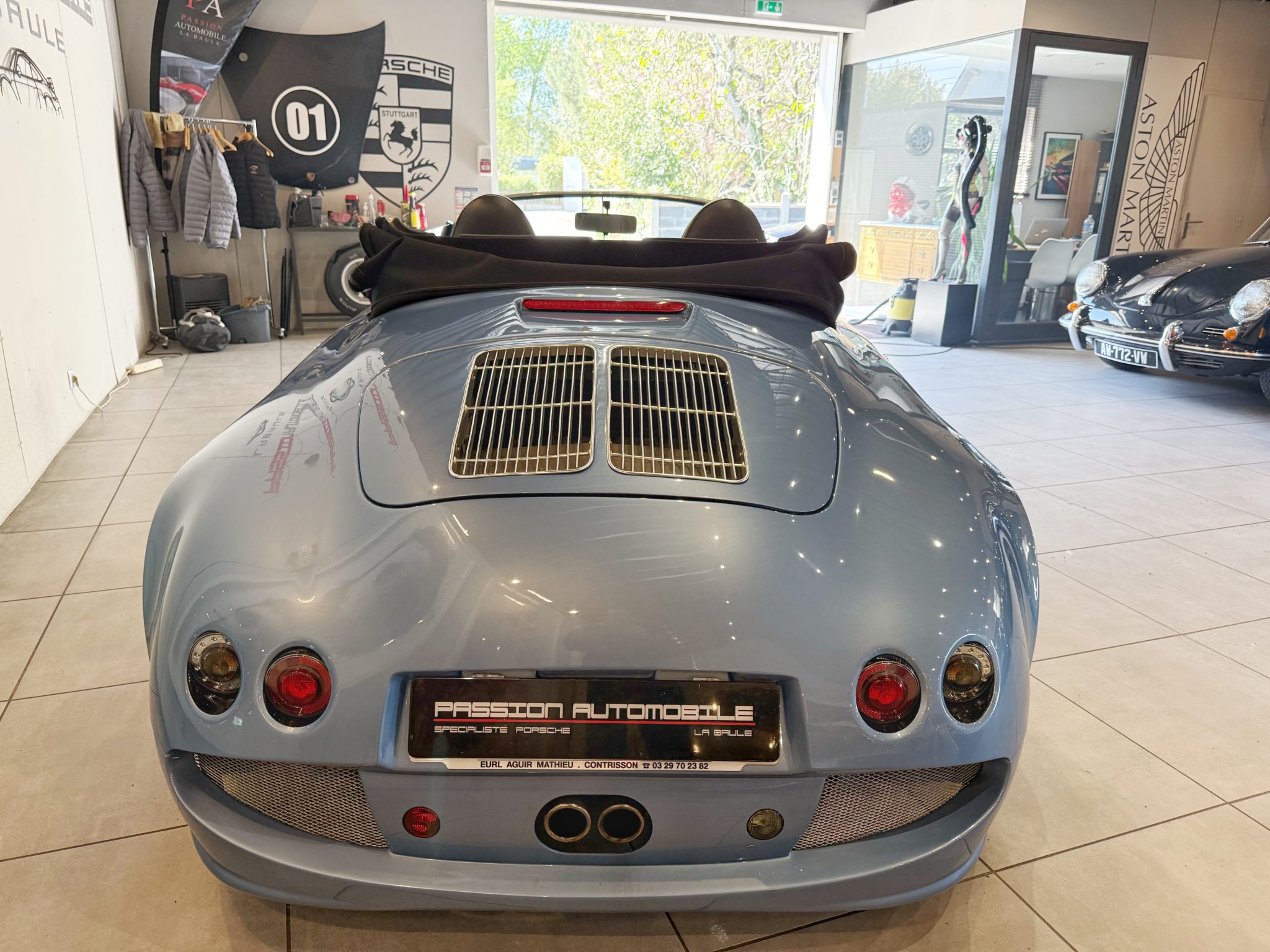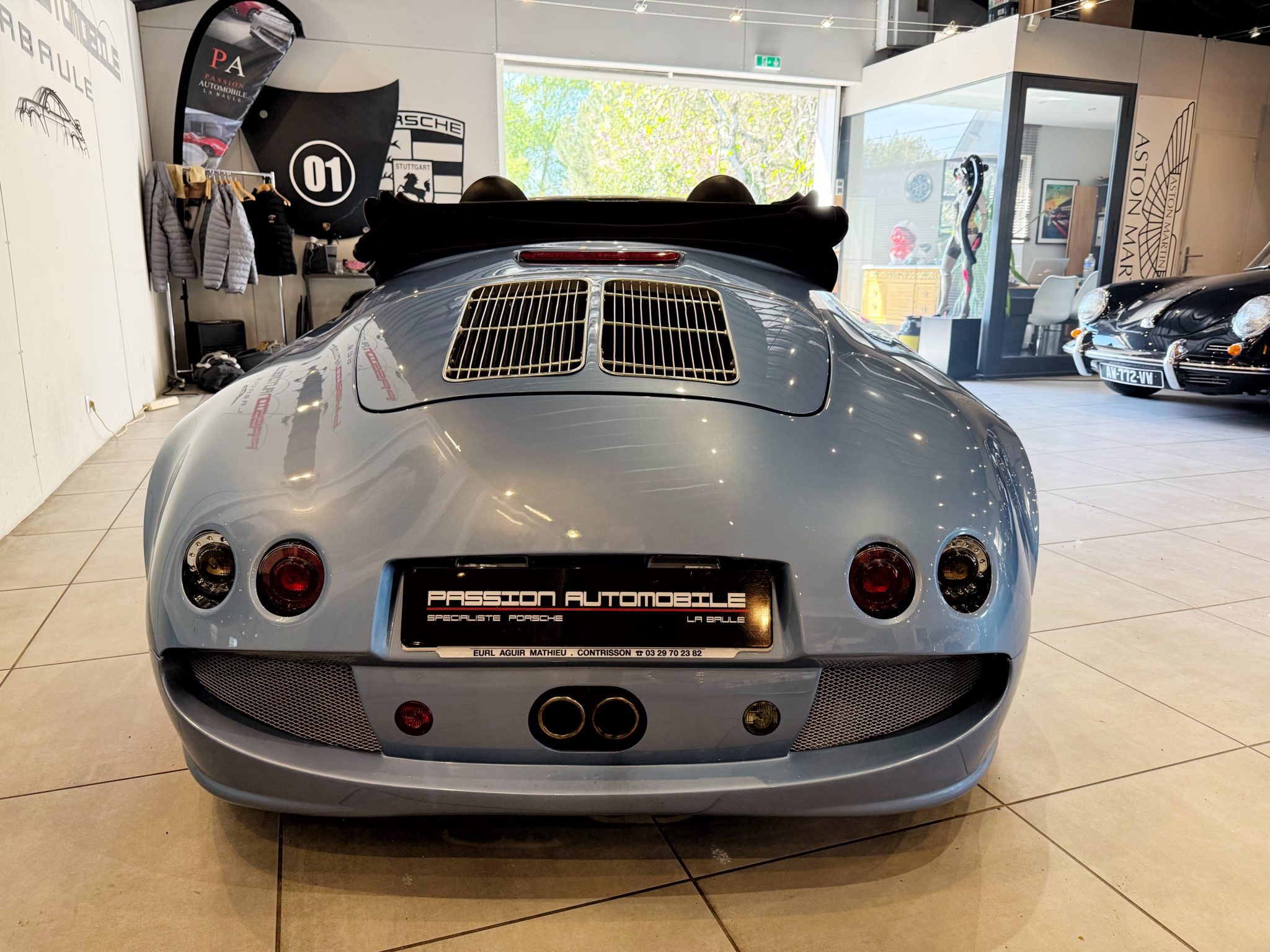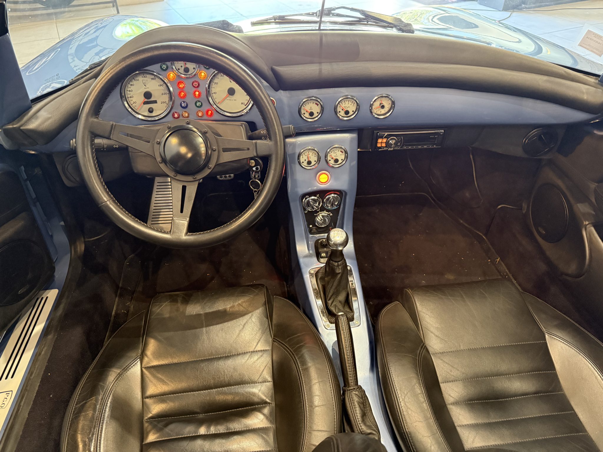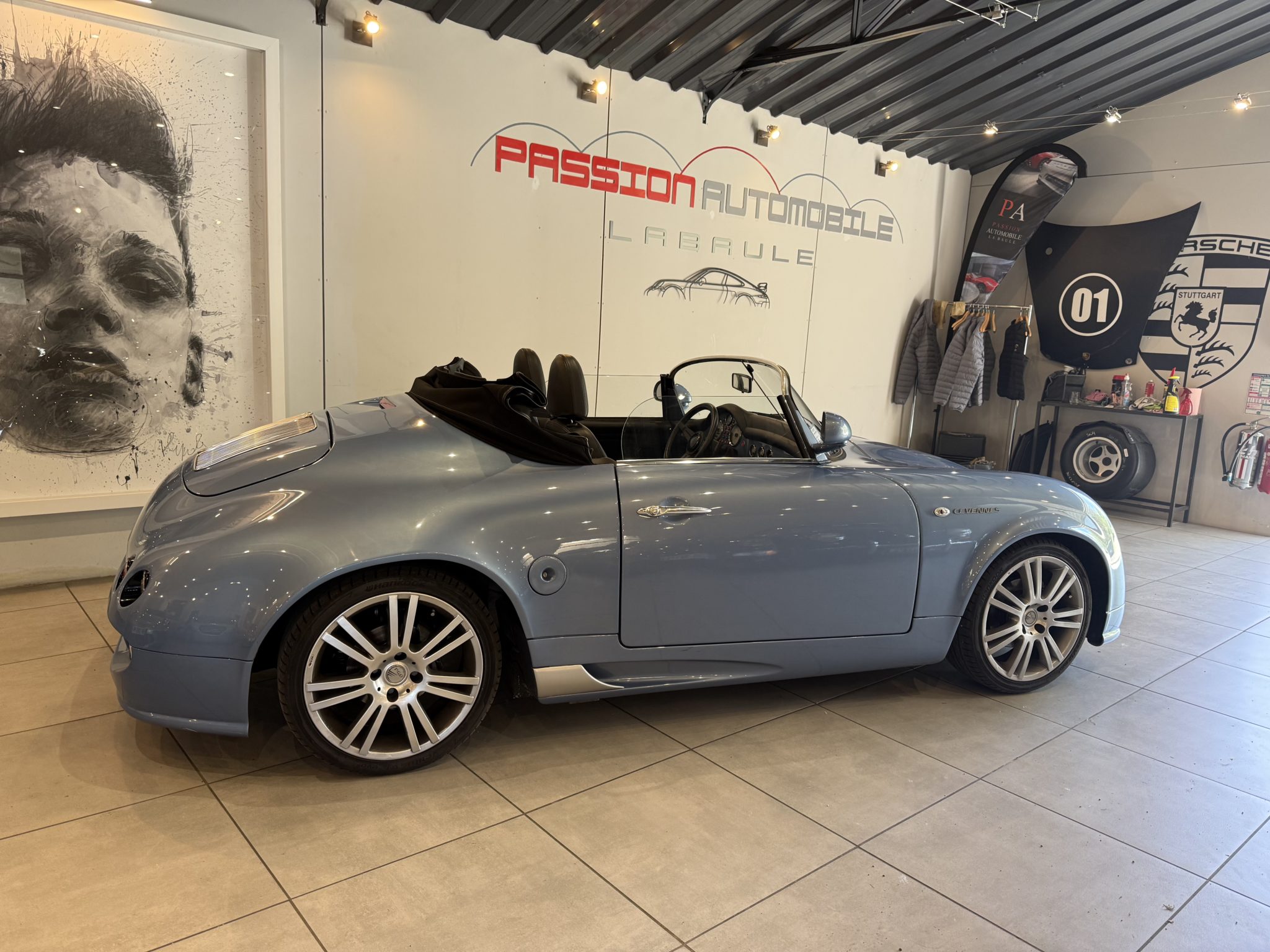 Réplique de Porsche 356 par PGO, finition « CEVENNES », bleu dynamique métal, intérieur cuir noir, capote Alpaga, climatisation, couvre tonneau.
