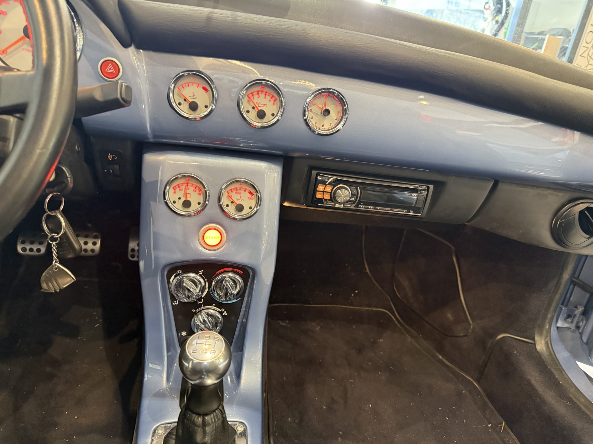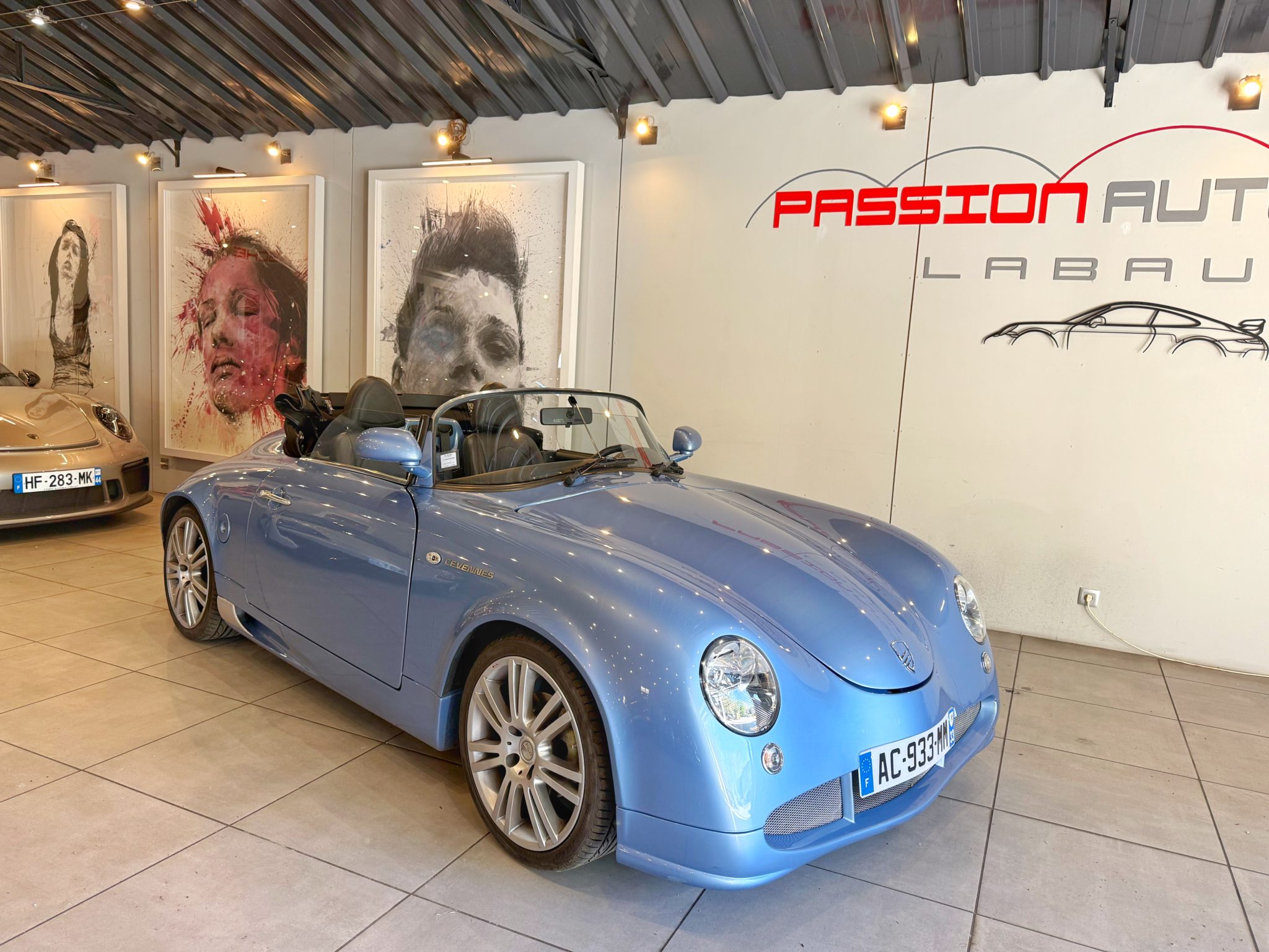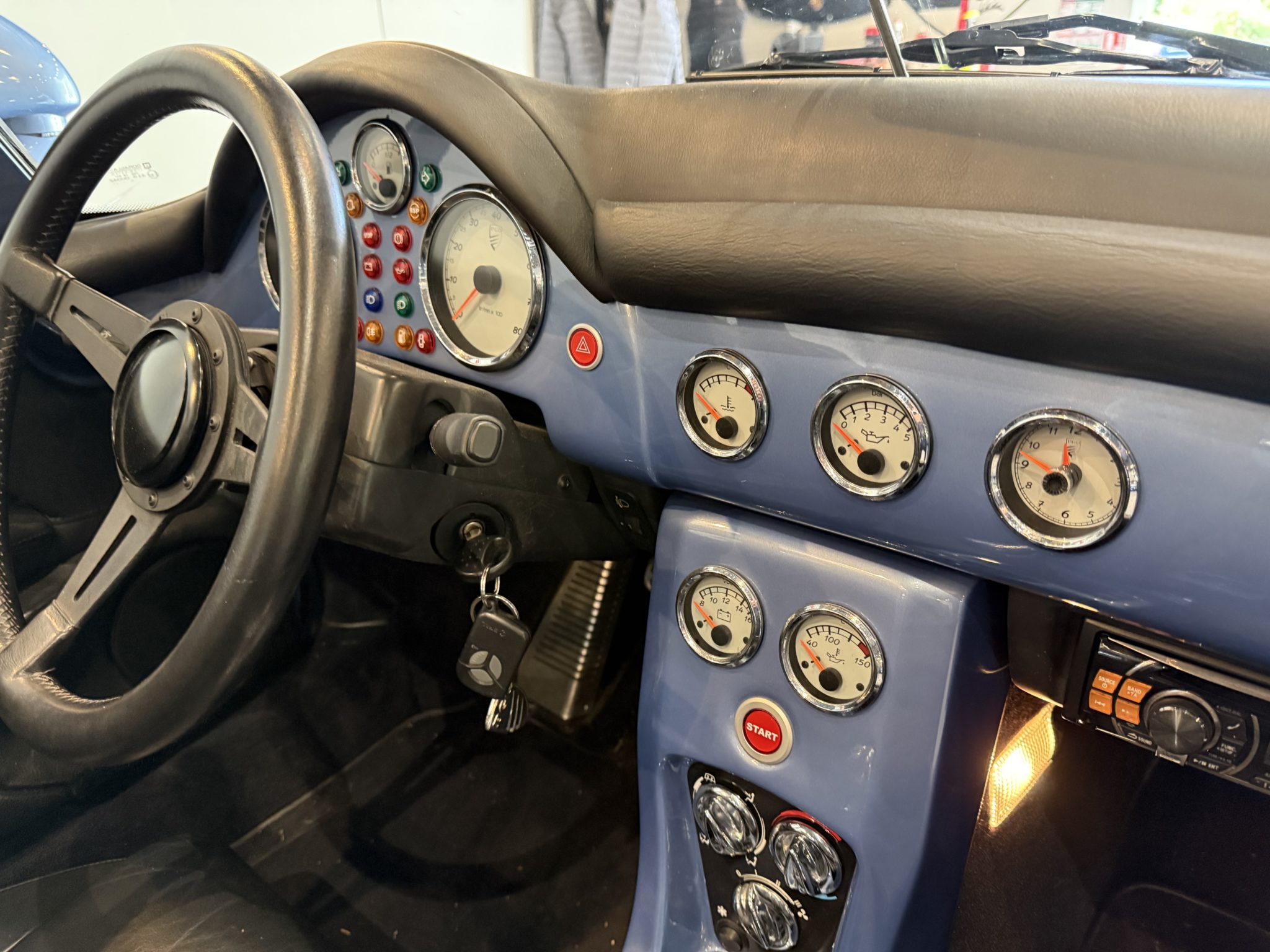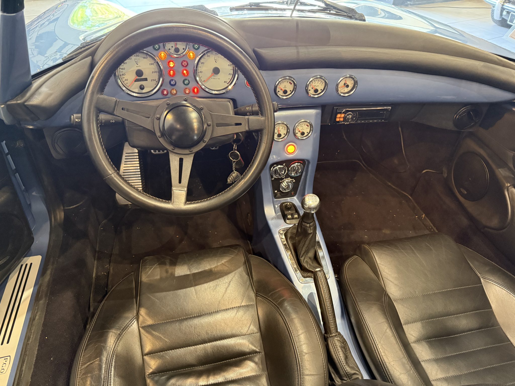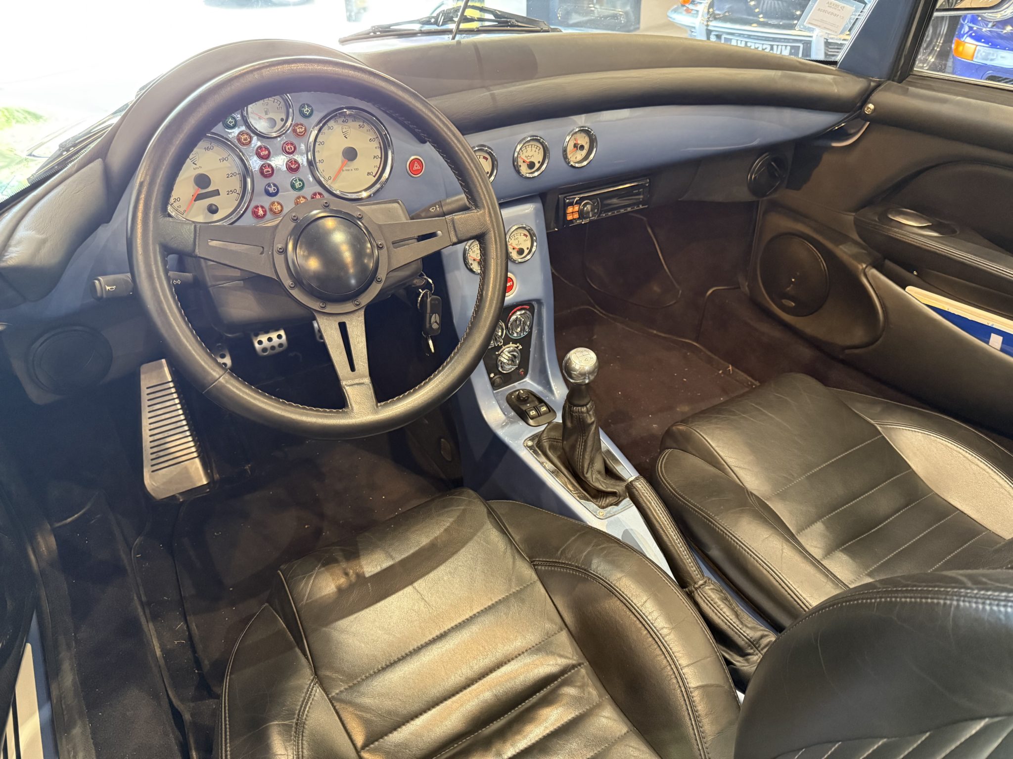 Réplique de Porsche 356 par PGO, finition « CEVENNES », bleu dynamique métal, intérieur cuir noir, capote Alpaga, climatisation, couvre tonneau.