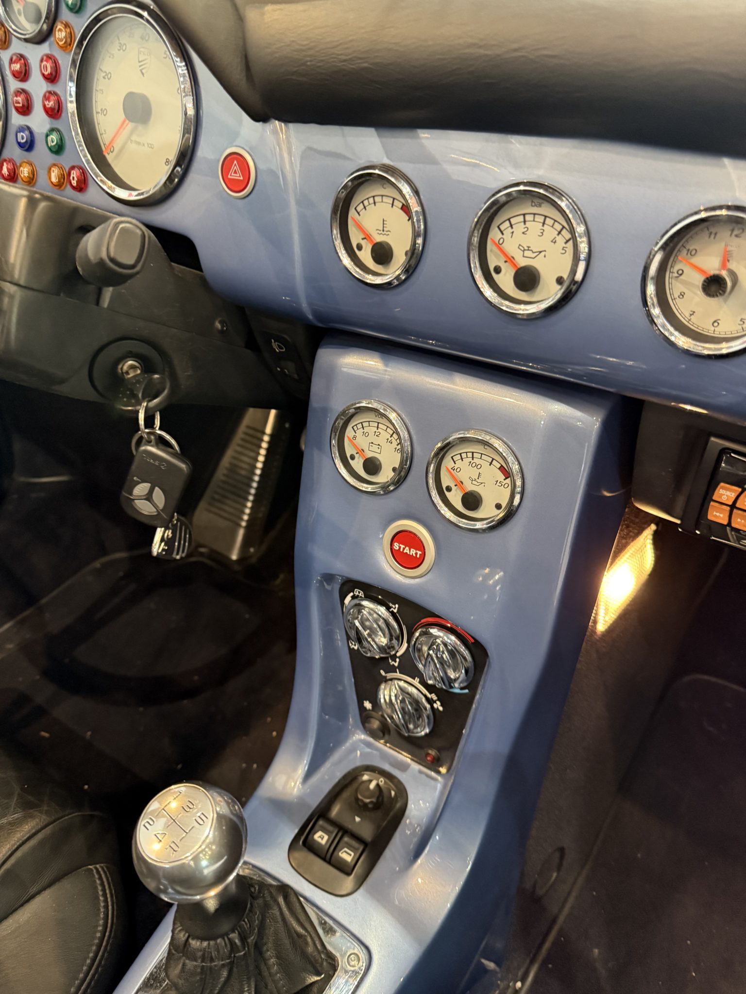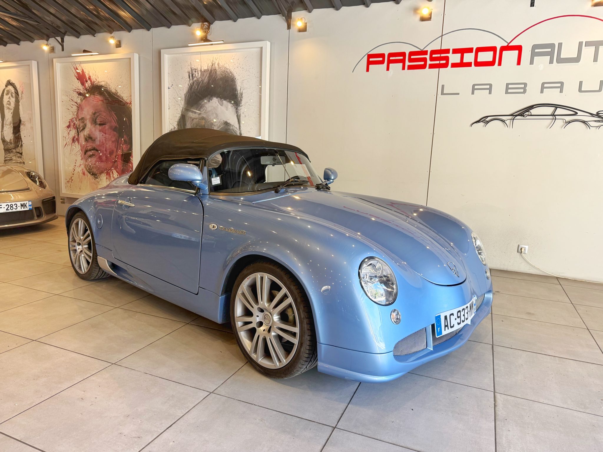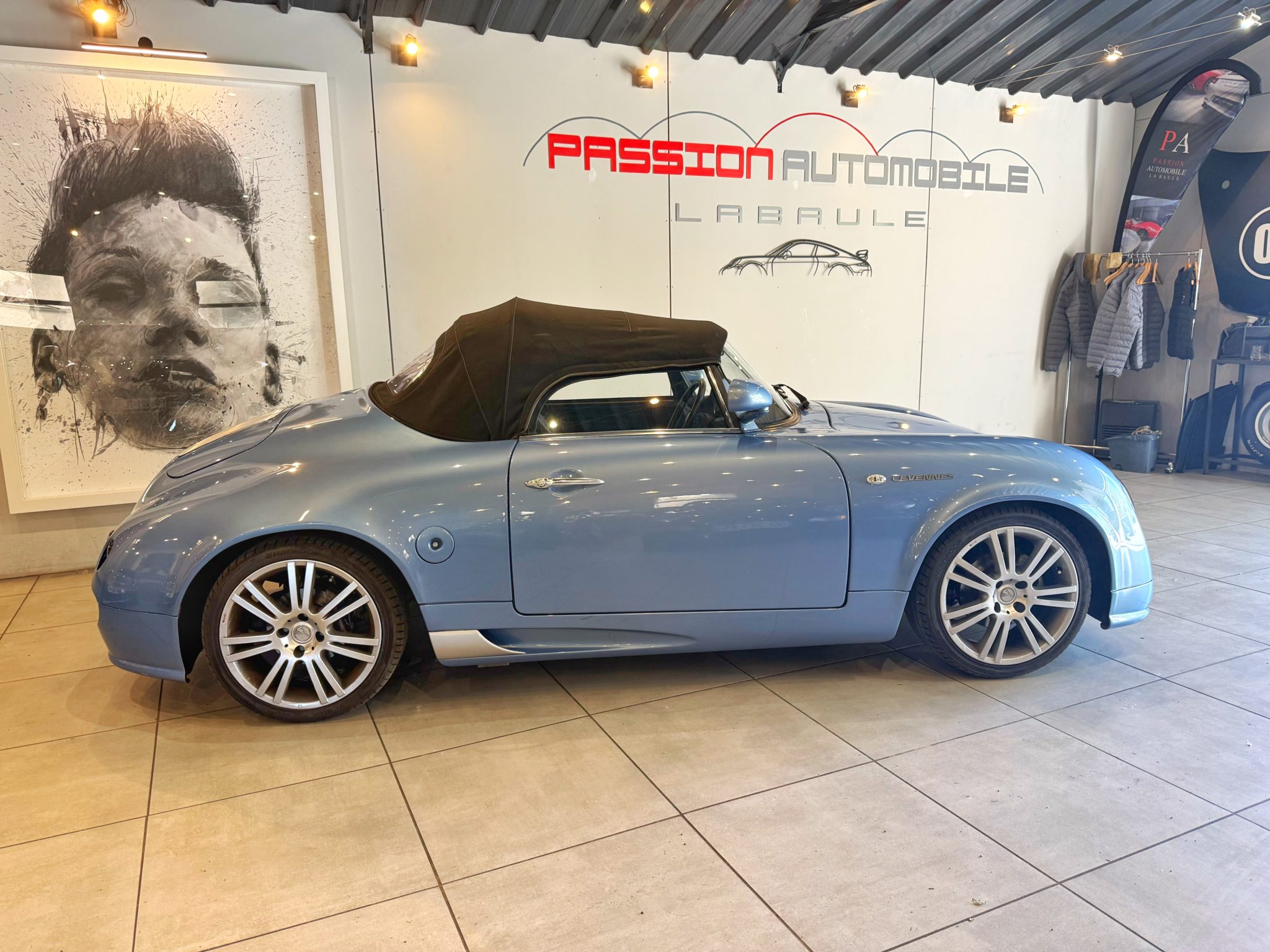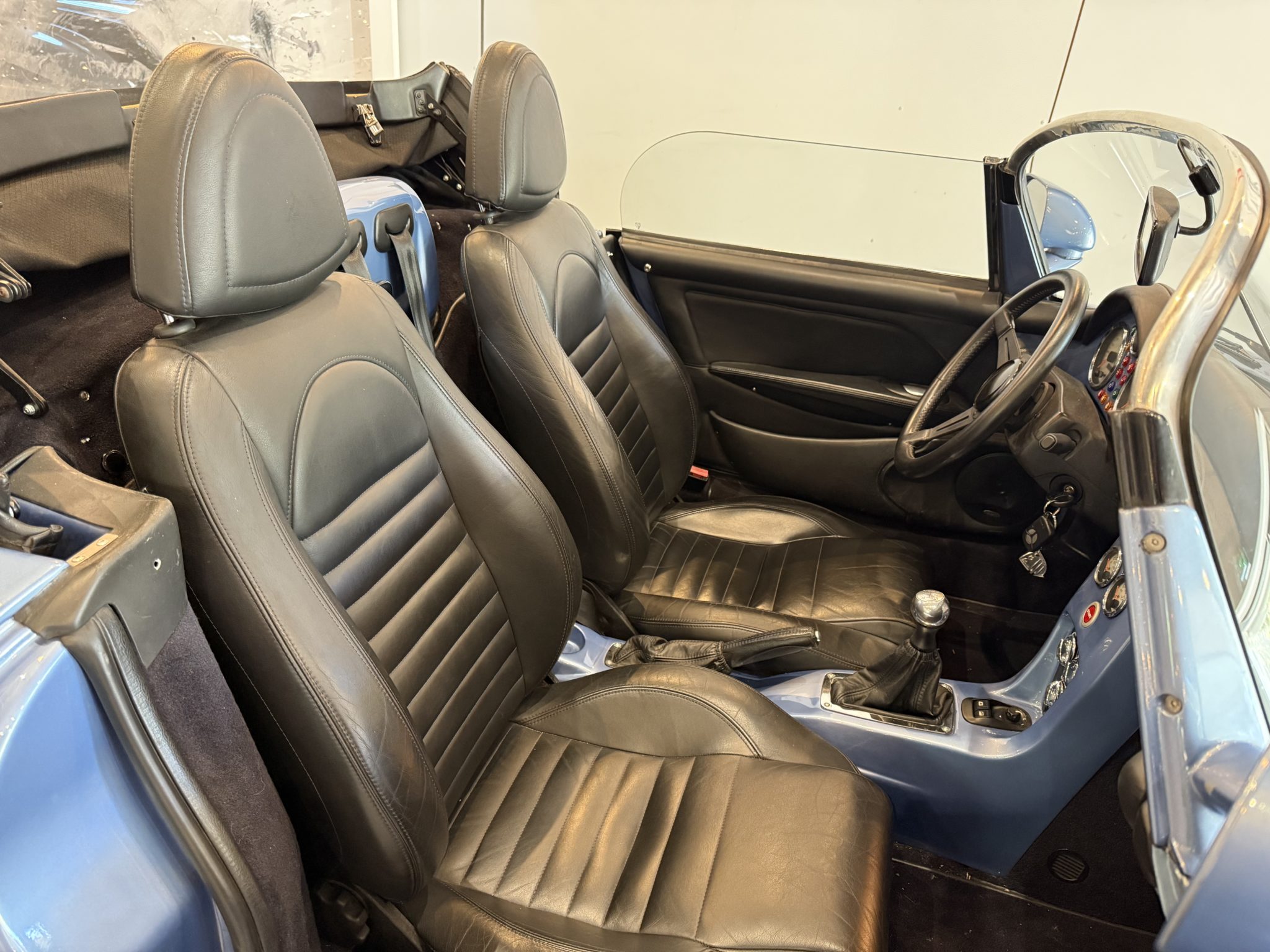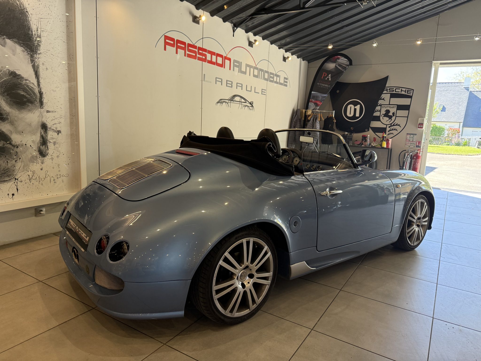 Réplique de Porsche 356 par PGO, finition « CEVENNES », bleu dynamique métal, intérieur cuir noir, capote Alpaga, climatisation, couvre tonneau.