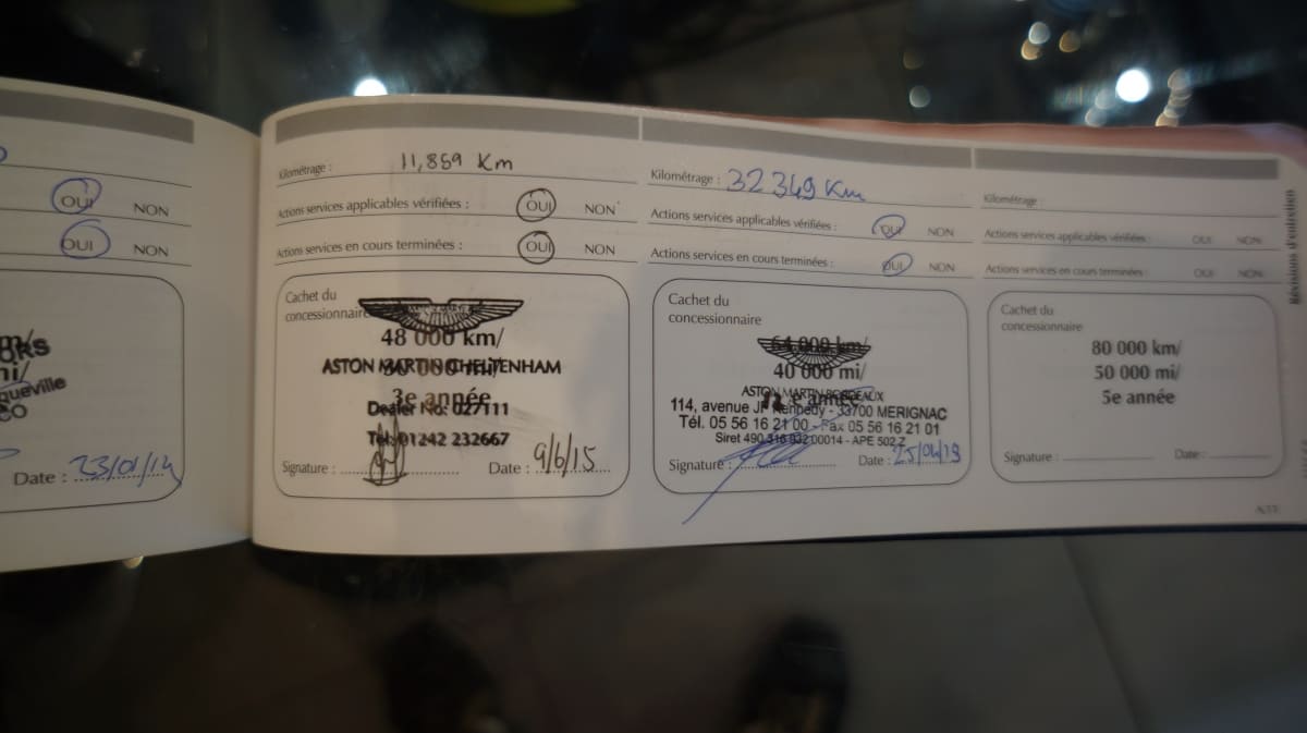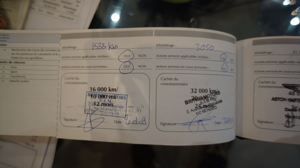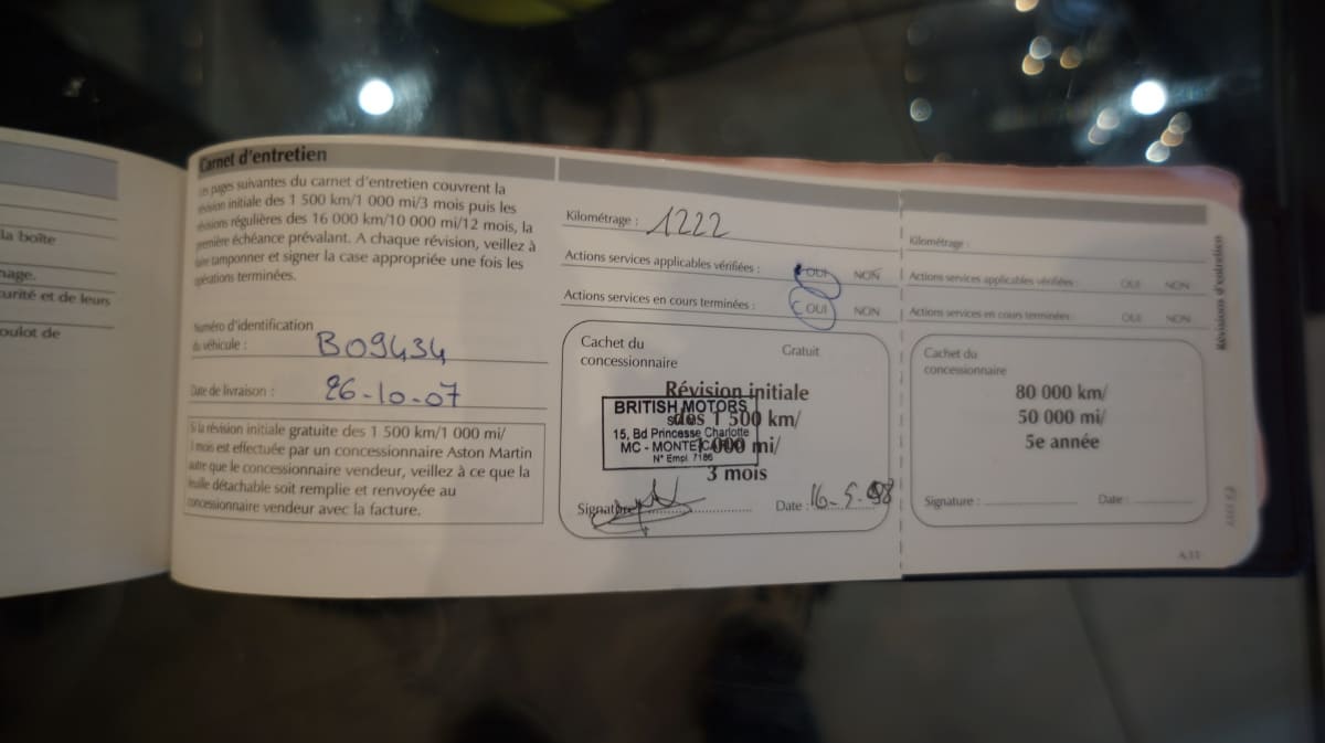 Entretien Aston Martin, carnet et dossier de factures.