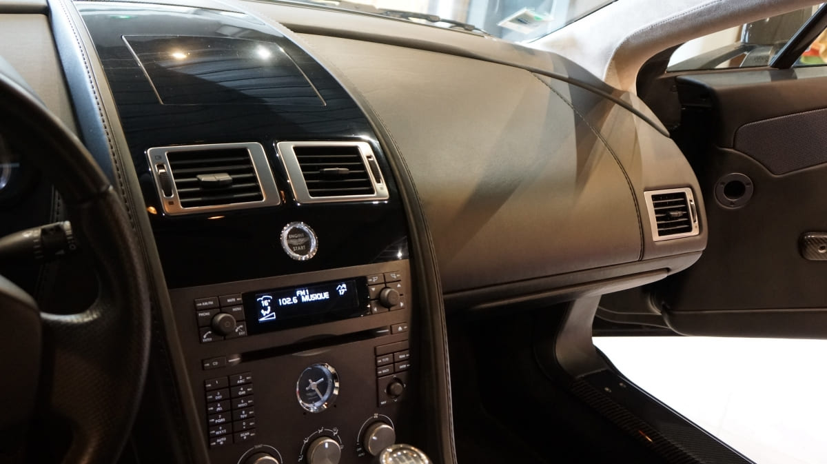 GPS, régulateur de vitesse, échappement sport ( valeur 3800 euro ), volant multifonctions, pavillon alcantara gris, radar stationnement arrière, housse de protection Aston Martin, sièges électriques, climatisation automatique