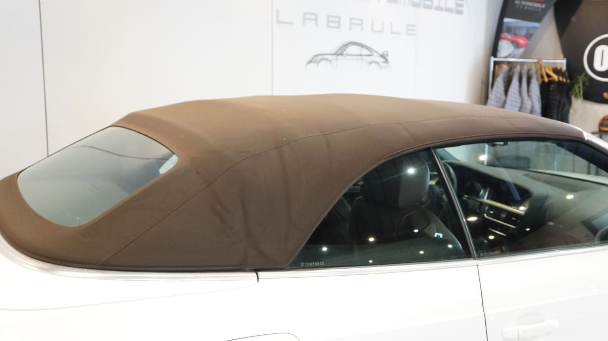 2.0 TDI 177ch, boite multitronic 8A, finition AVUS, Blanc, intérieur et capote marron.