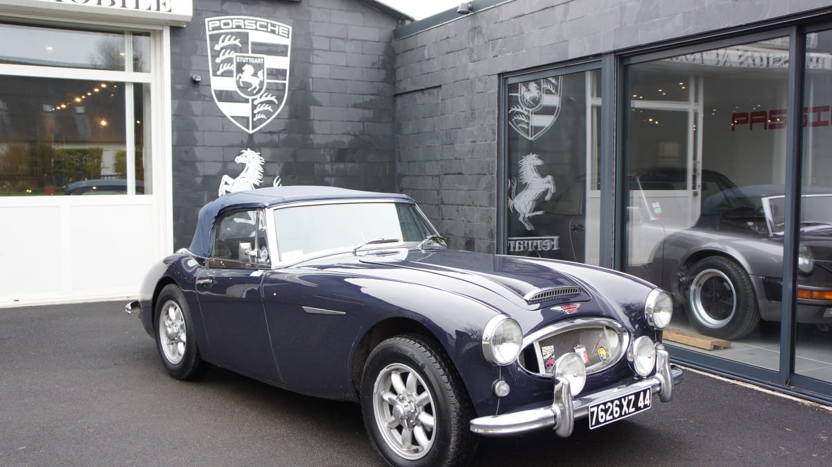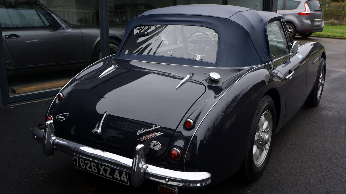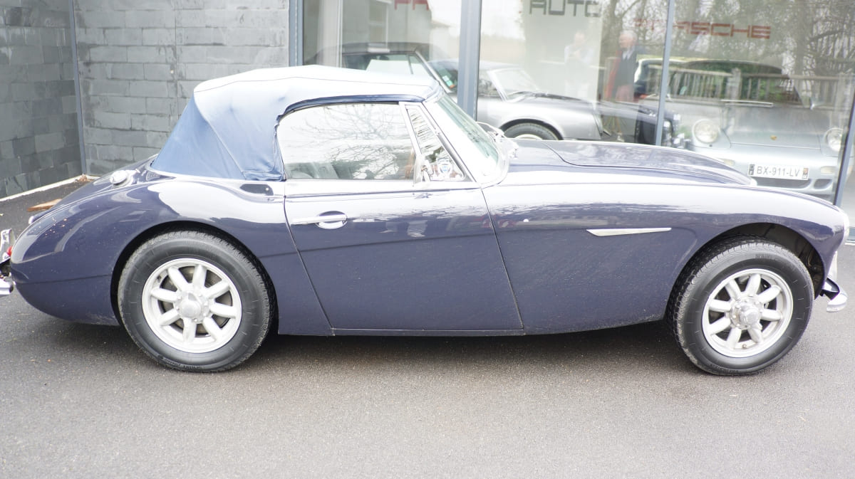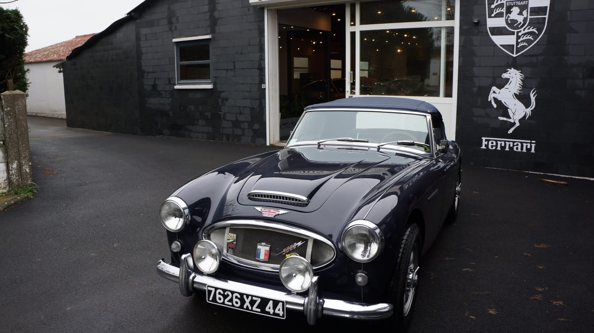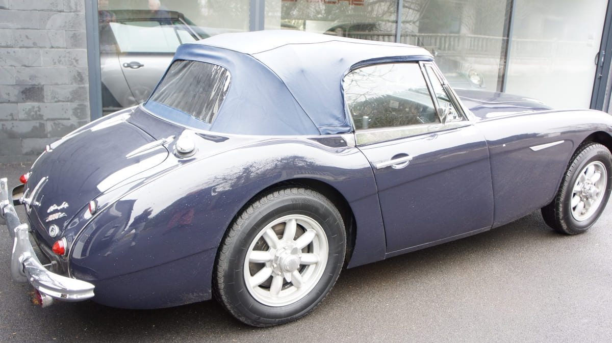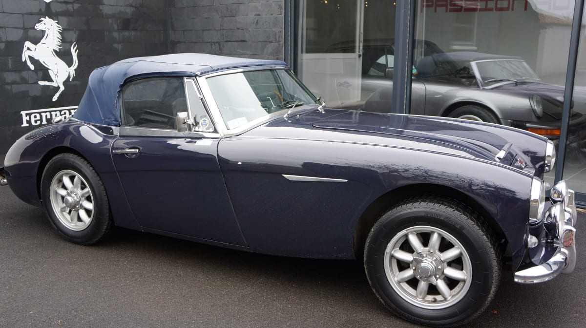 Austin Healey 3000 MKII A BJ7 de 1962. bleu marine, intérieur bleu.