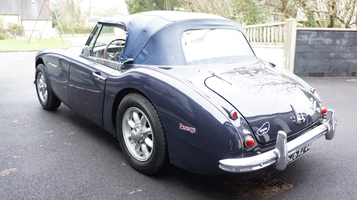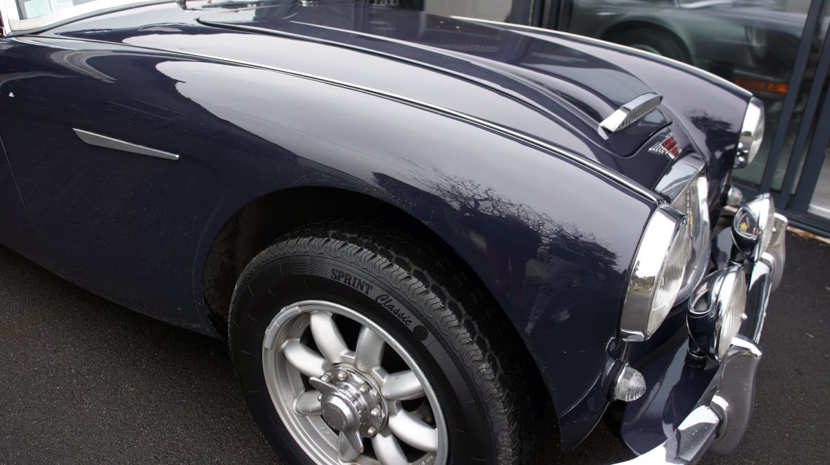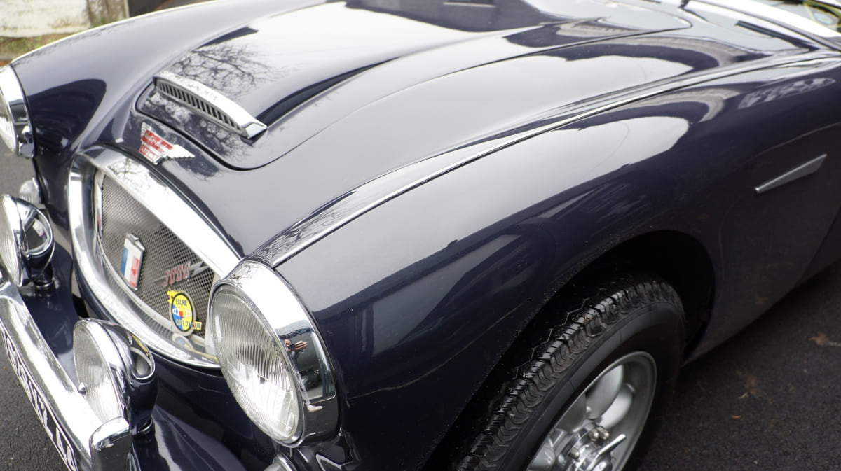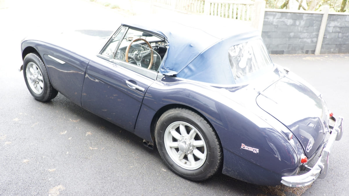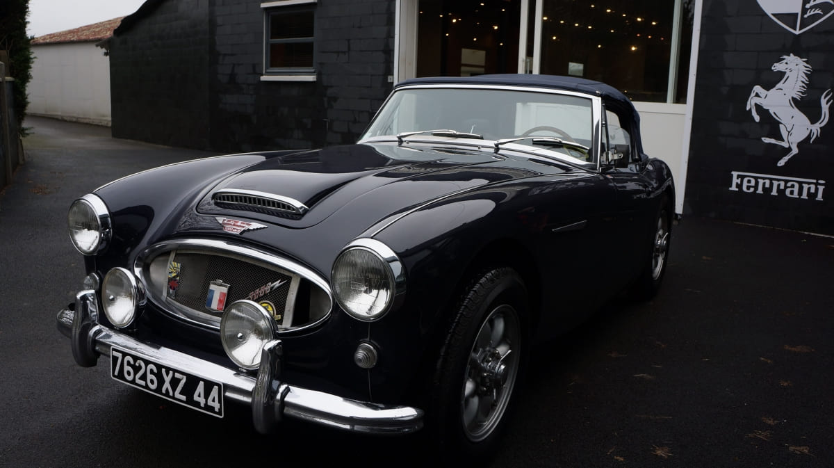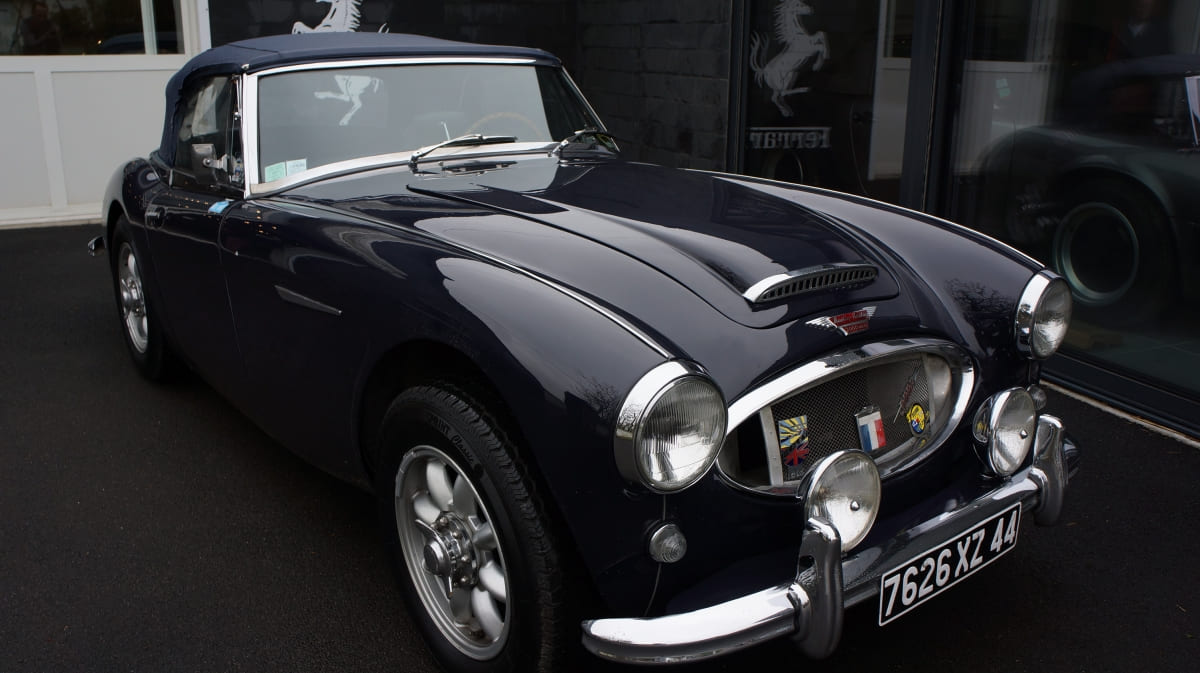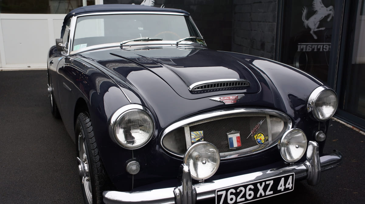 Austin Healey 3000 MKII A BJ7 de 1962. bleu marine, intérieur bleu.