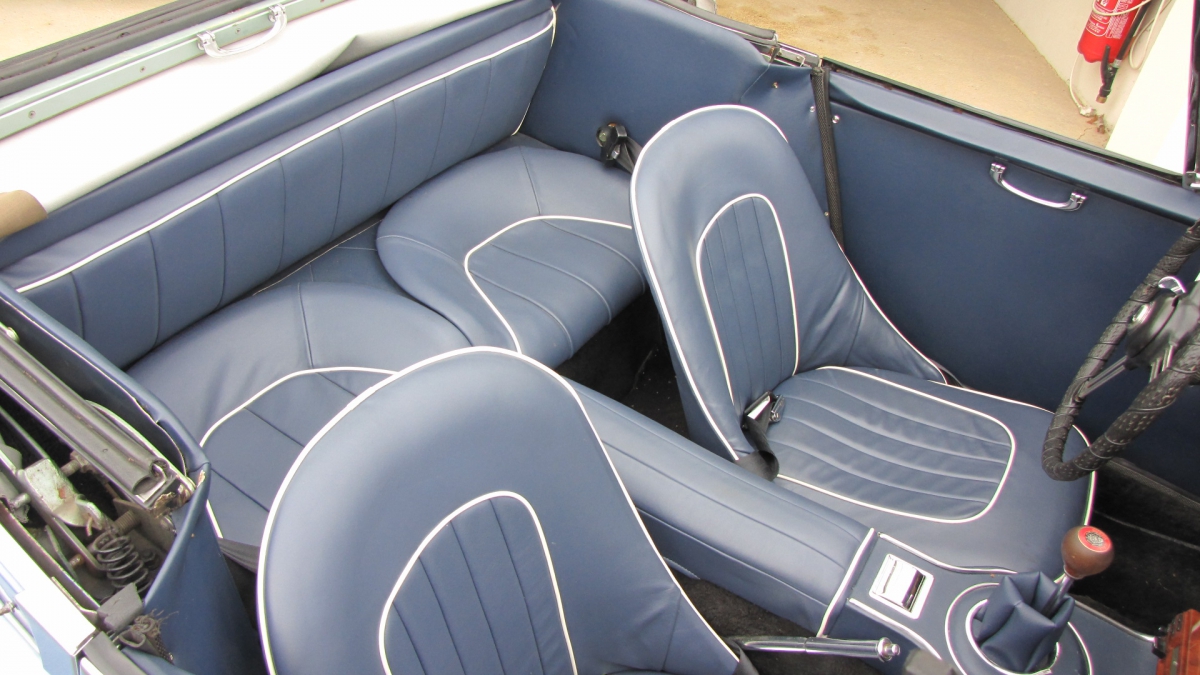 Très saine, peinture et intérieur restaurés, capote récente.