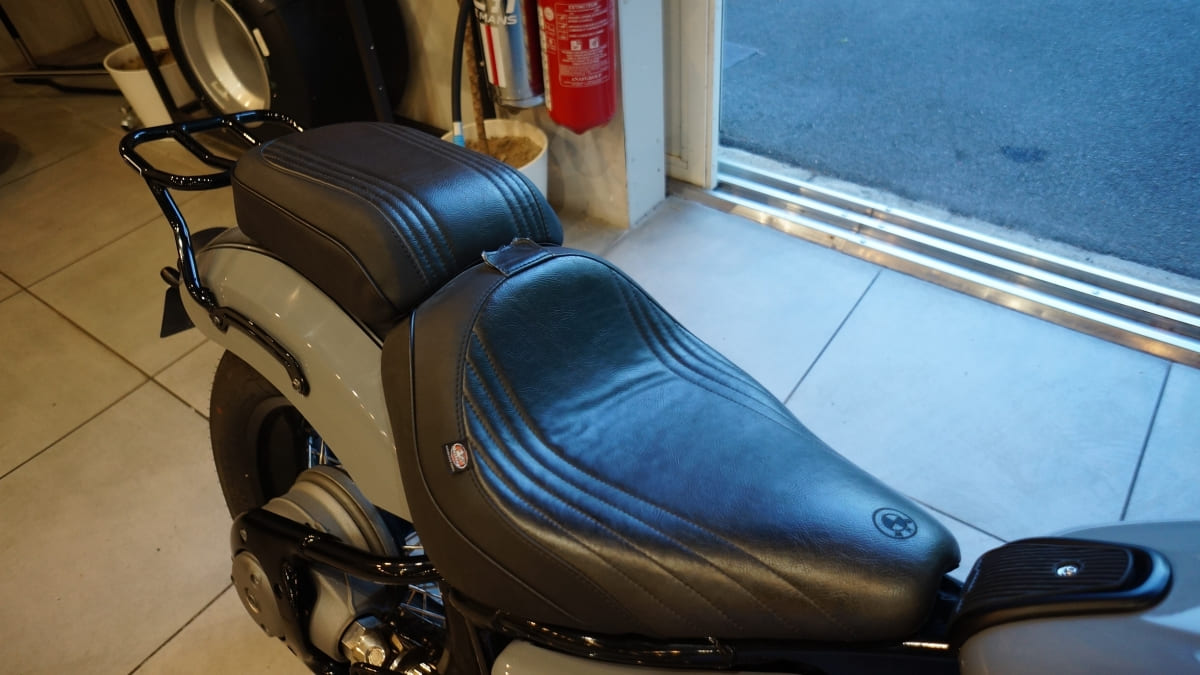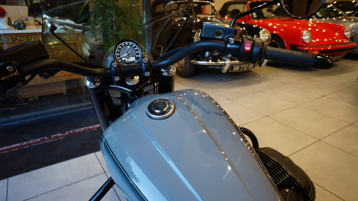 6000 euro de préparation; Peinture gris Nardo par C.P Art graphic, Silencieux Unit Garage Titanium, Cligo Avant et arrière FCR; Pare cylindre Wunderlich, Selle Mustang, porte bagage, moulures couvre culasses, Pare brise Puig.