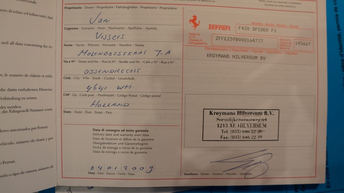 Ferrari F430 Spider de Janvier 2009 totalisant 117000 km.