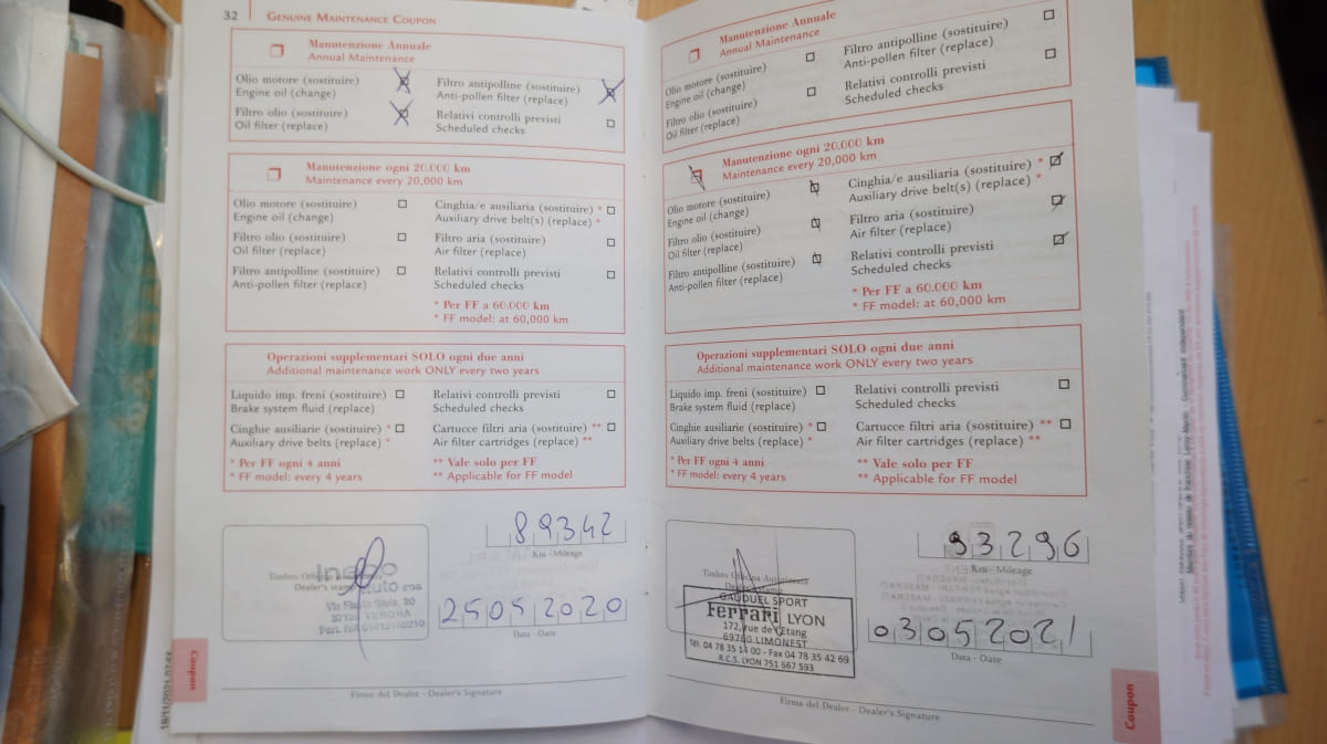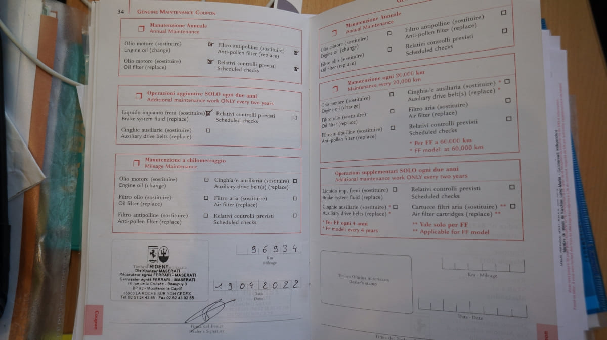 Entretien 100% Ferrari, dernier entretien à 97000 km, éligible garantie Ferrari Power.