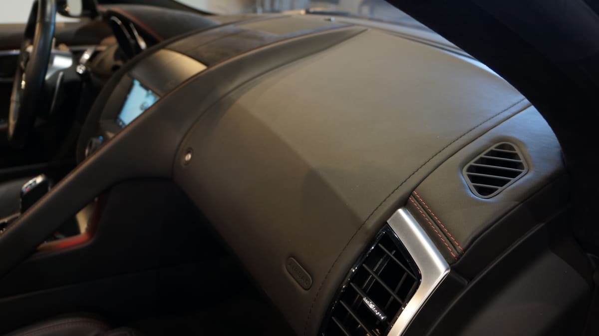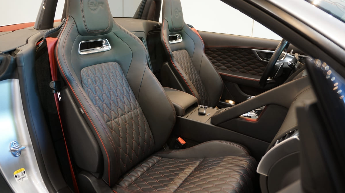 Gris métallisé, intérieur cuir noir et surpiqures rouge