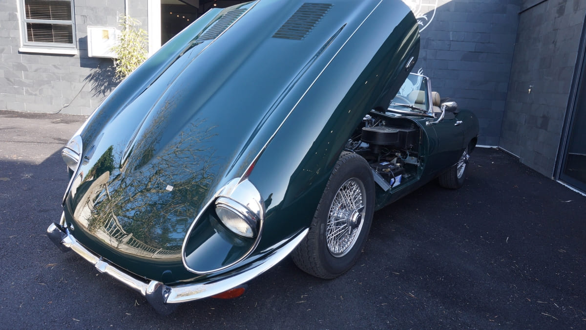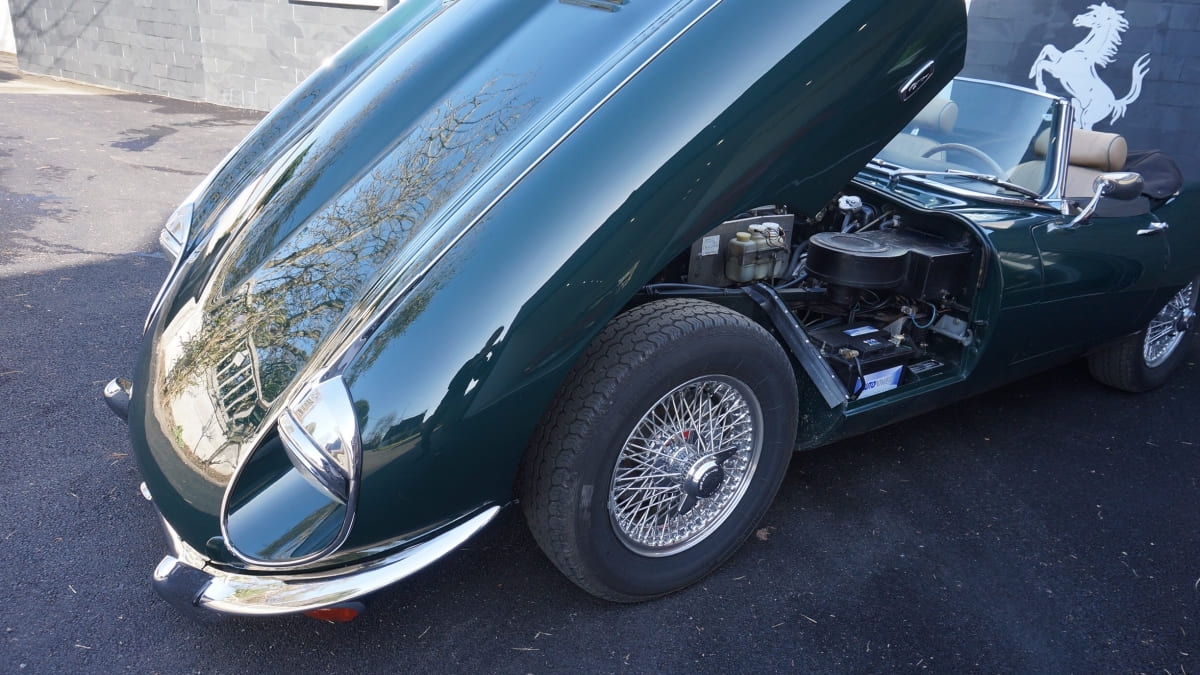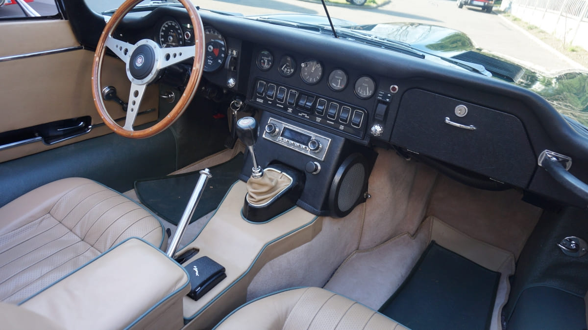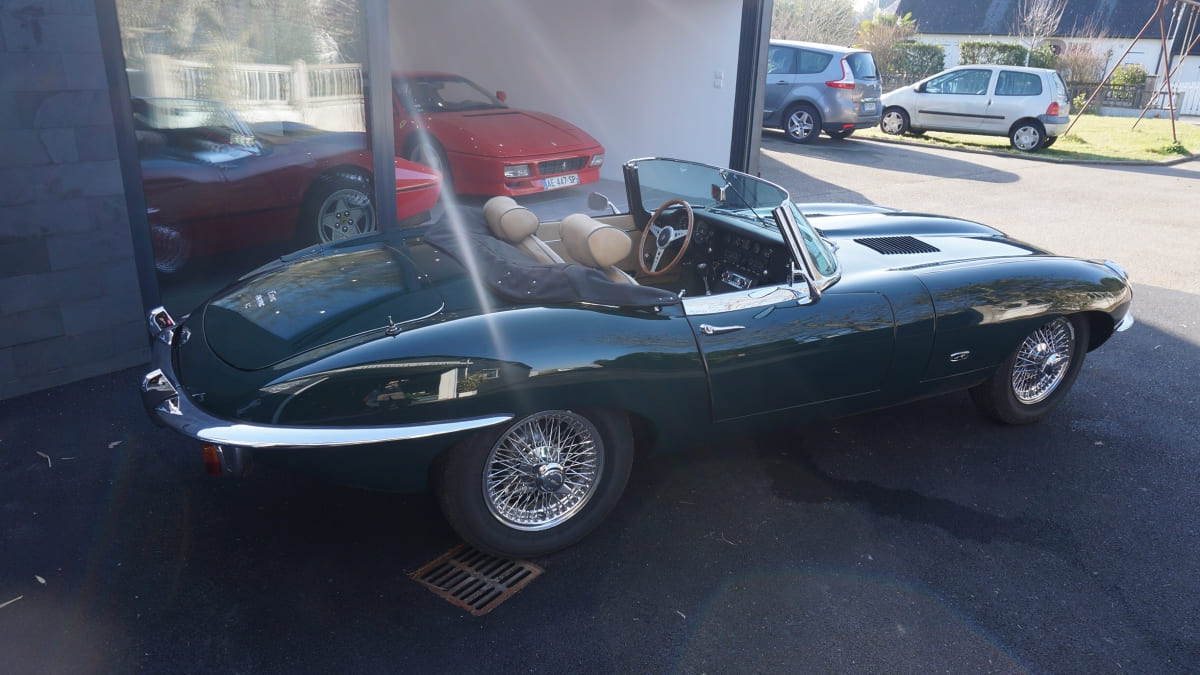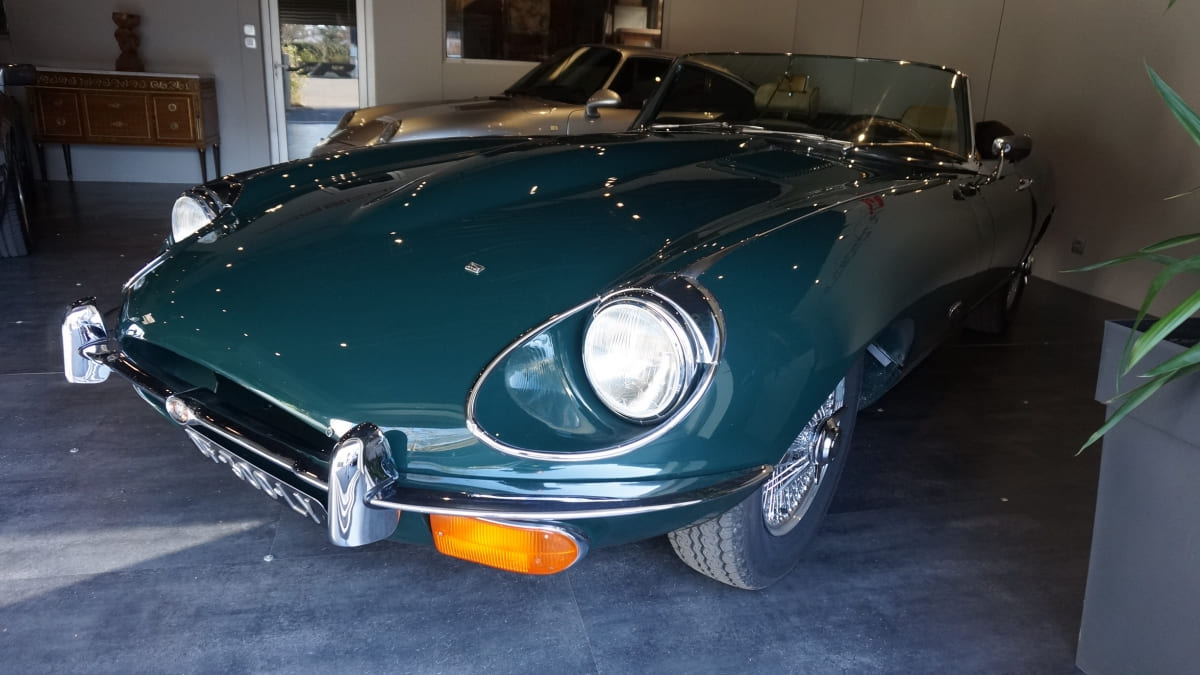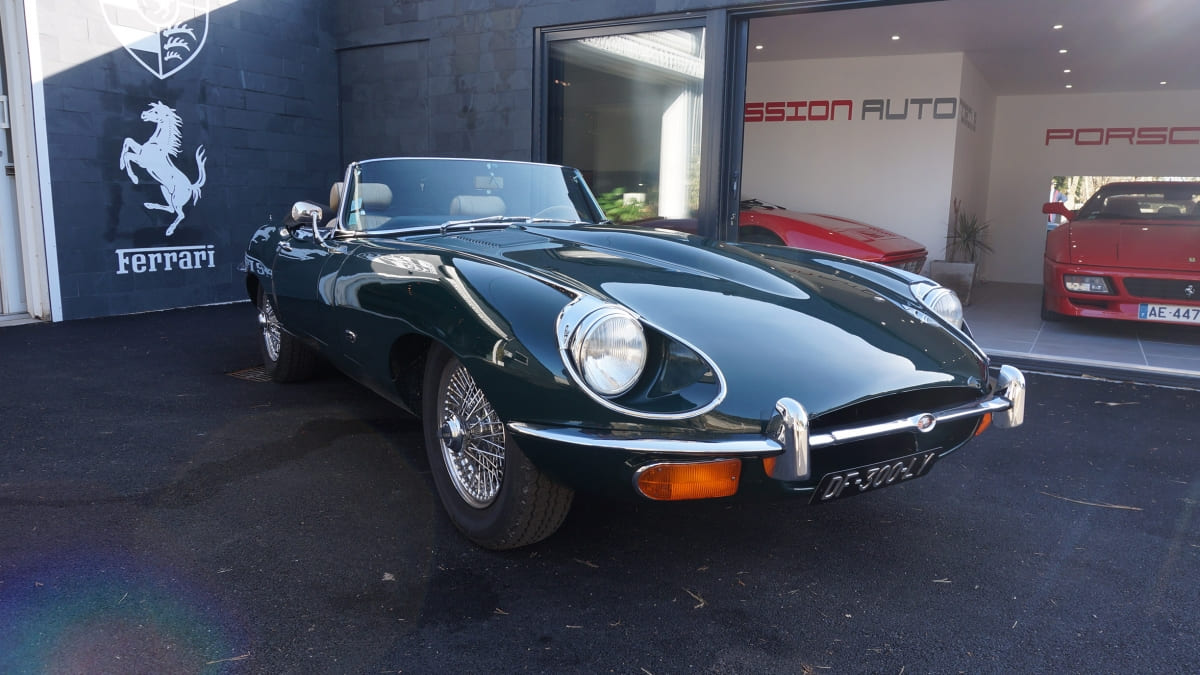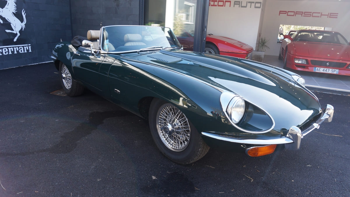 Jaguar Type E cabriolet série 2 de 1970, 6 cylindres 4.2 litres, boite manuelle 4 vitesses. 3 carburateurs S.U