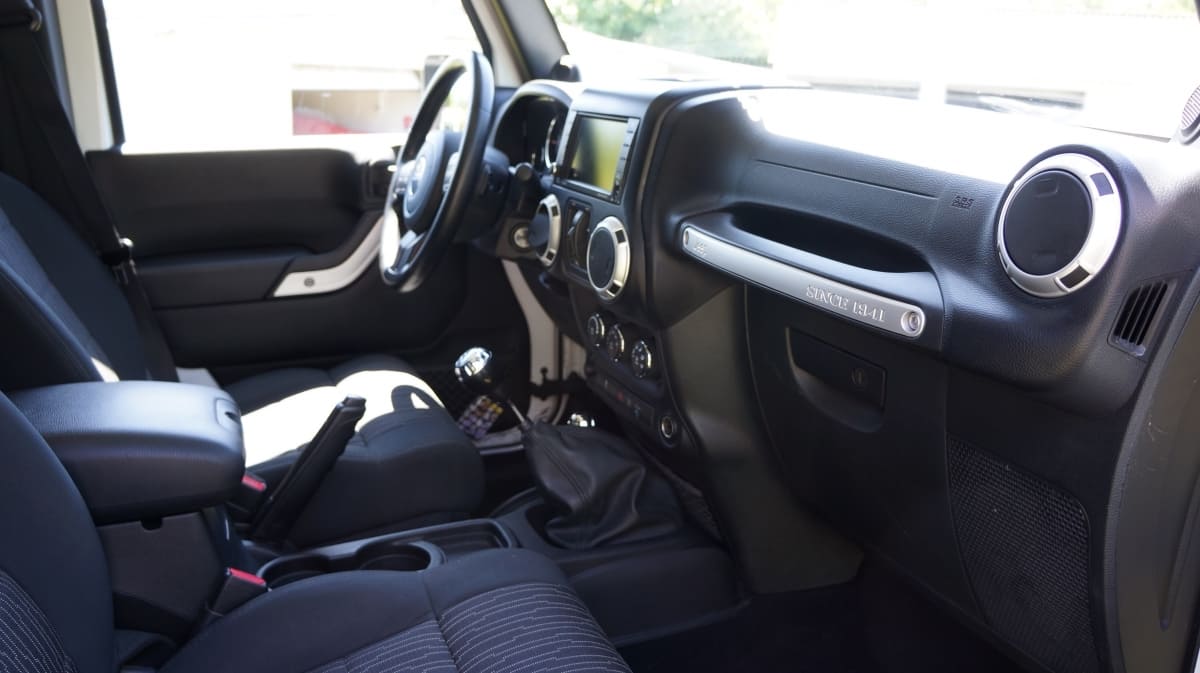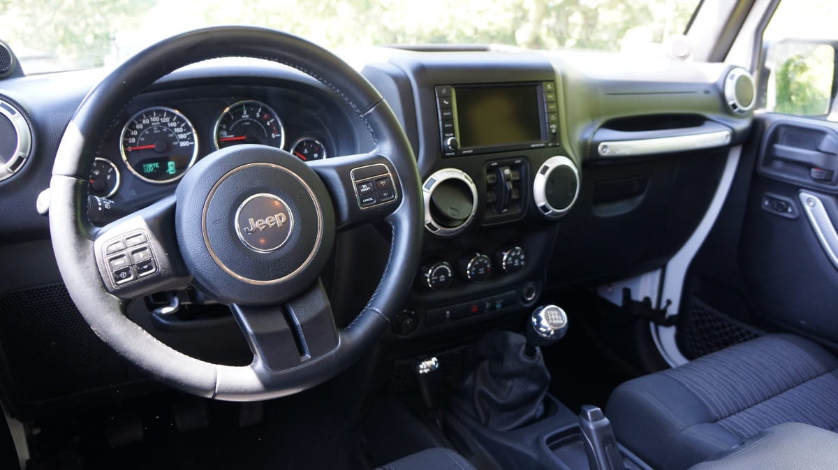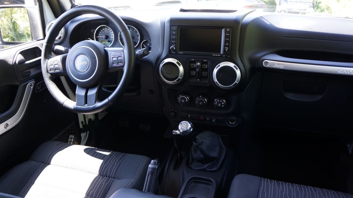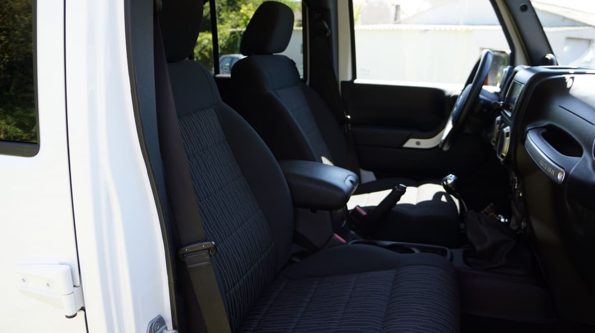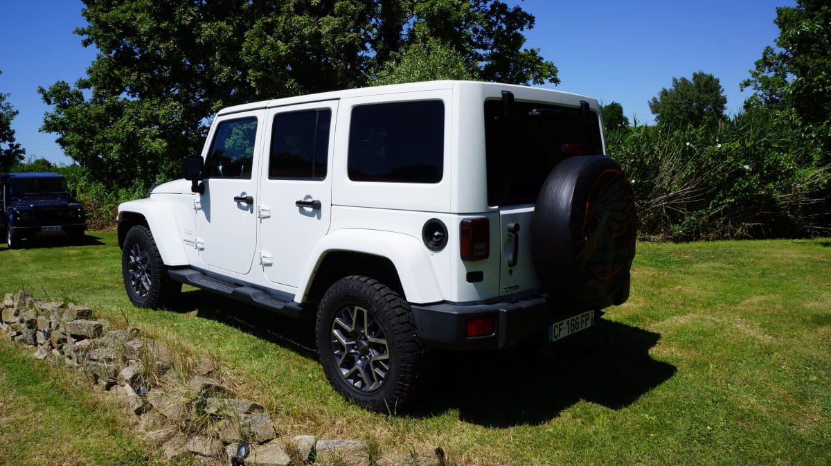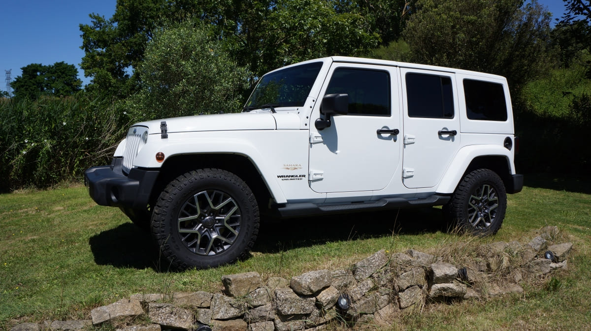 Jeep Wrangler de mai 2012 totalisant 96000 km, boite mécanique 6 vitesses. blanc intérieur tissus gris foncé, Finition Sahara: GPS, Bluetooth, régulateur de vitesse, volant multifonctions, climatisation automatique, attache remorque.