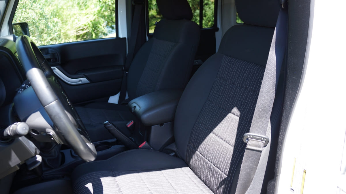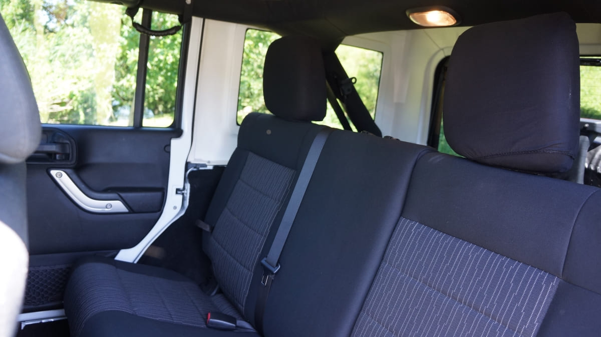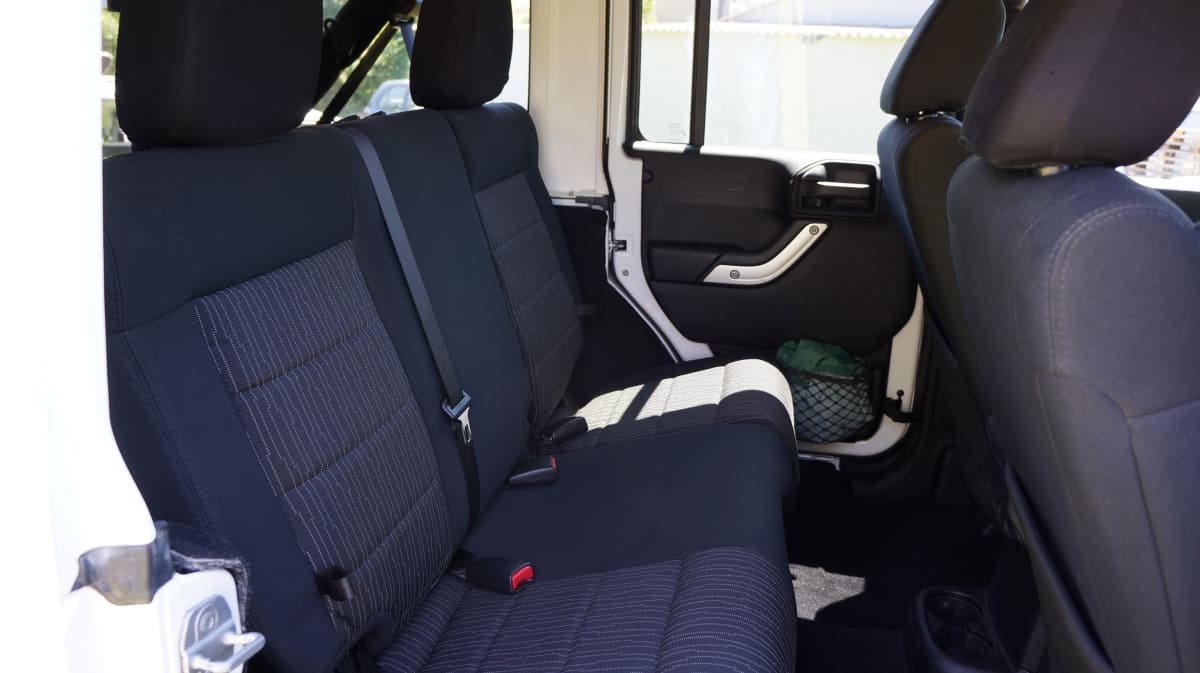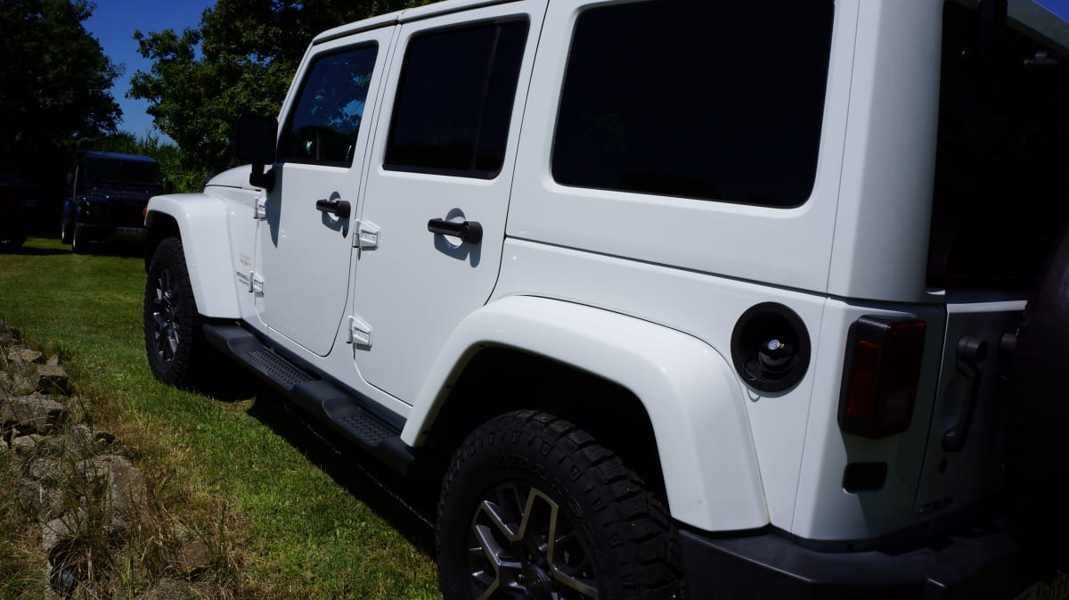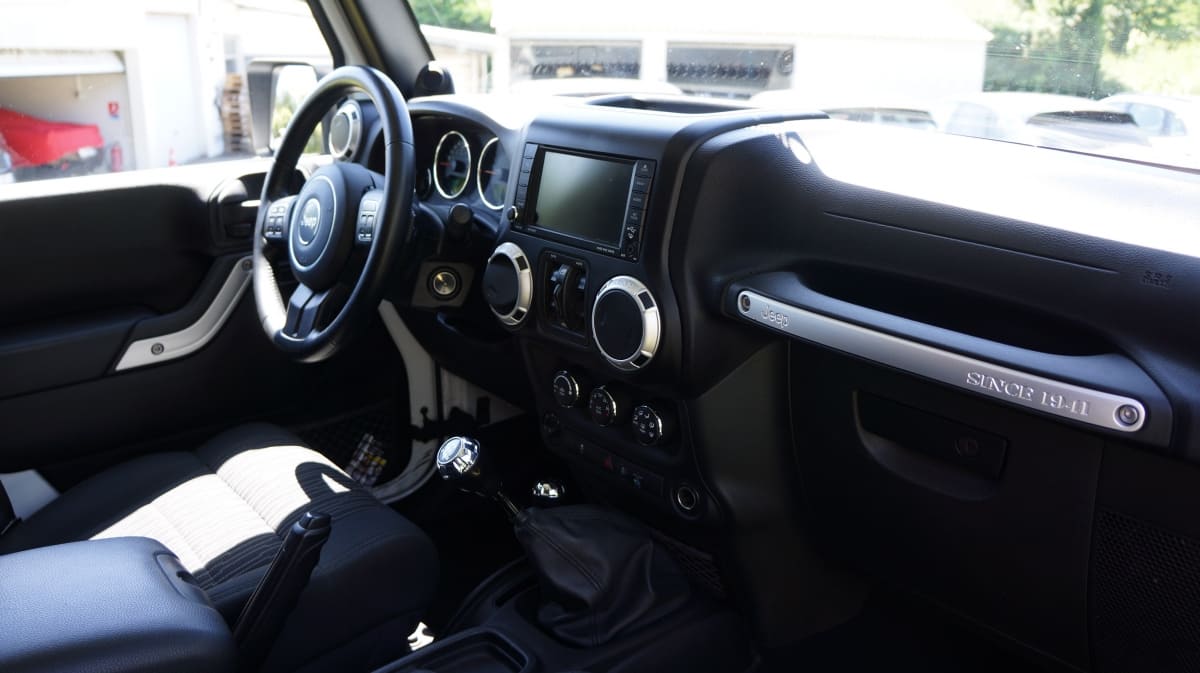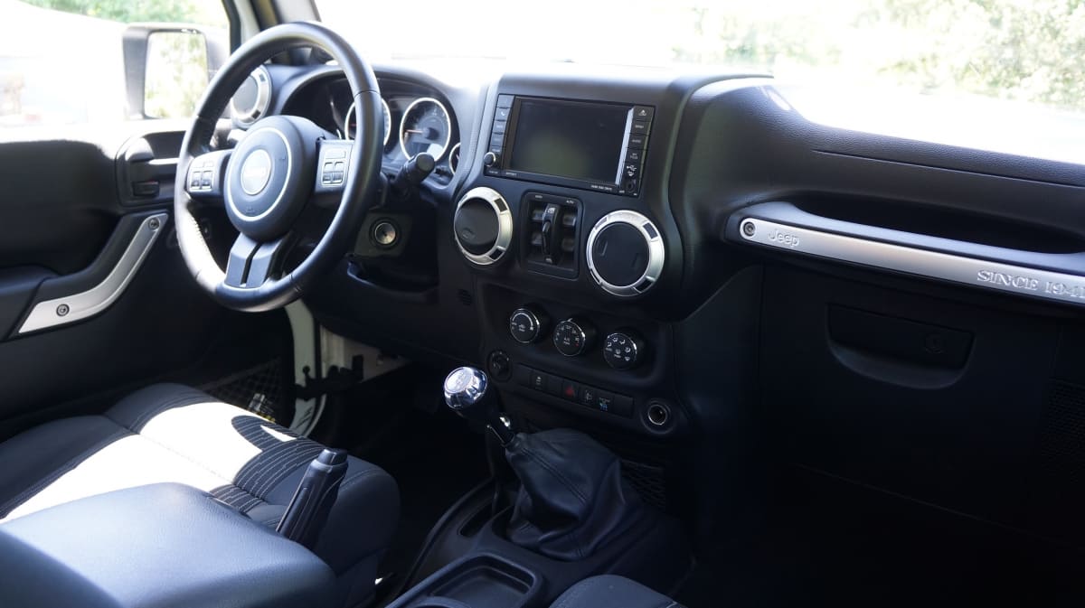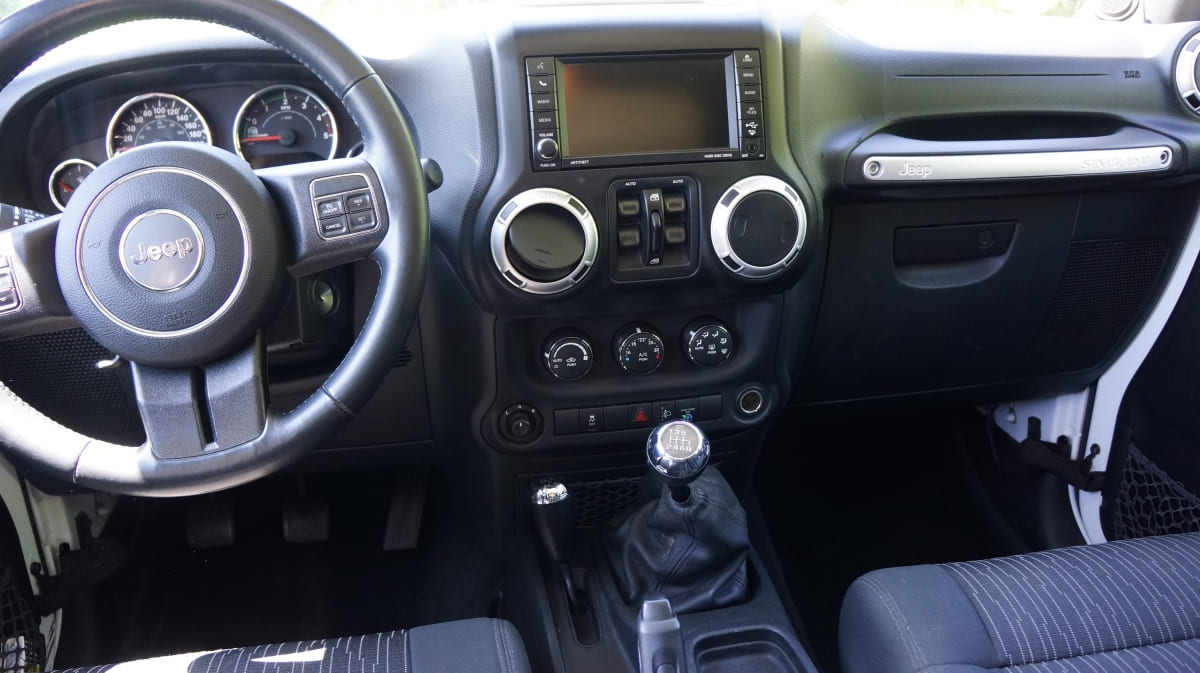 Jeep Wrangler de mai 2012 totalisant 96000 km, boite mécanique 6 vitesses. blanc intérieur tissus gris foncé, Finition Sahara: GPS, Bluetooth, régulateur de vitesse, volant multifonctions, climatisation automatique, attache remorque.