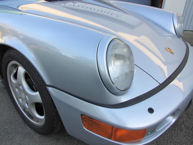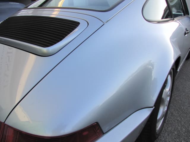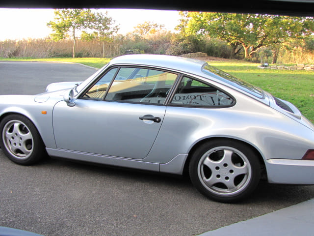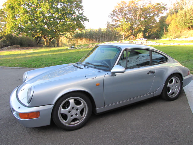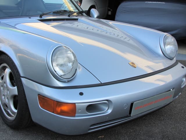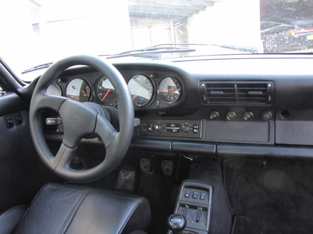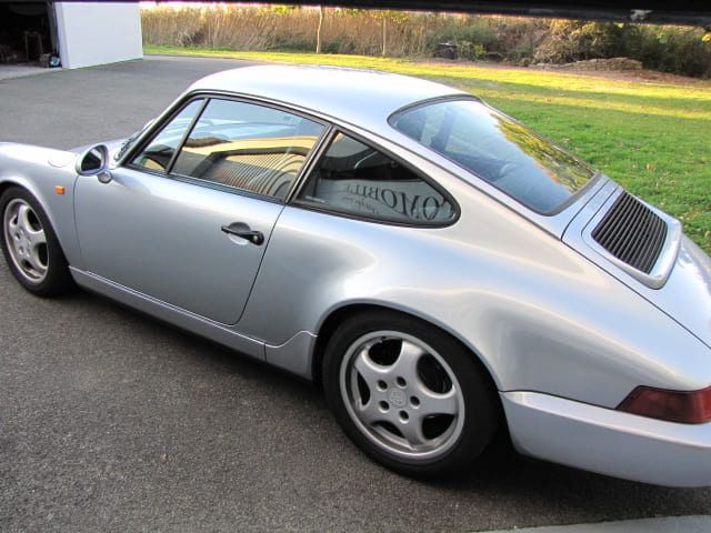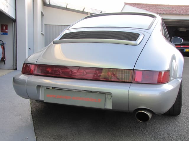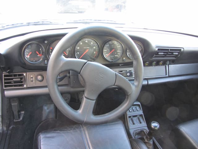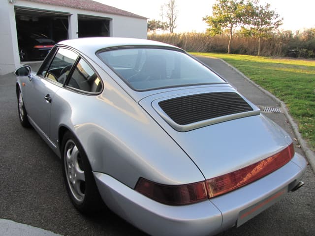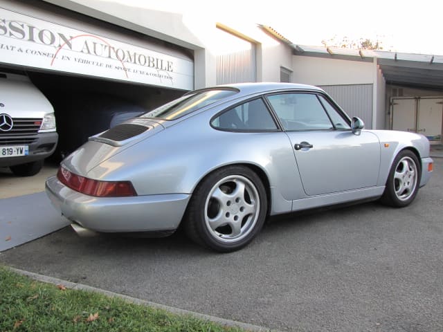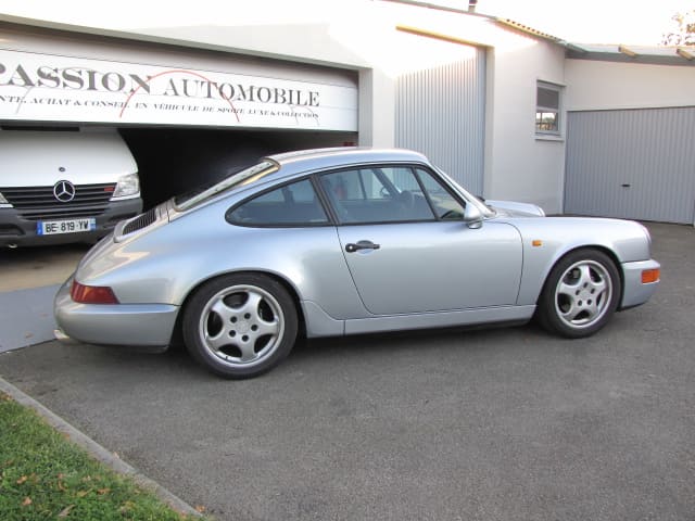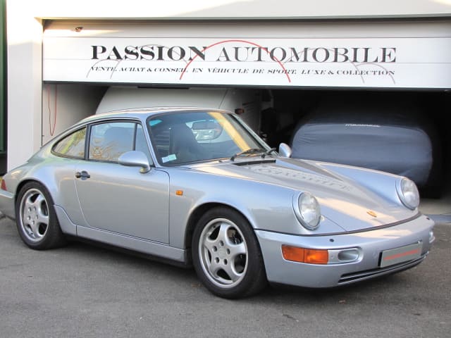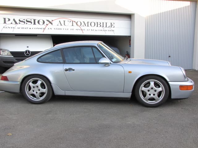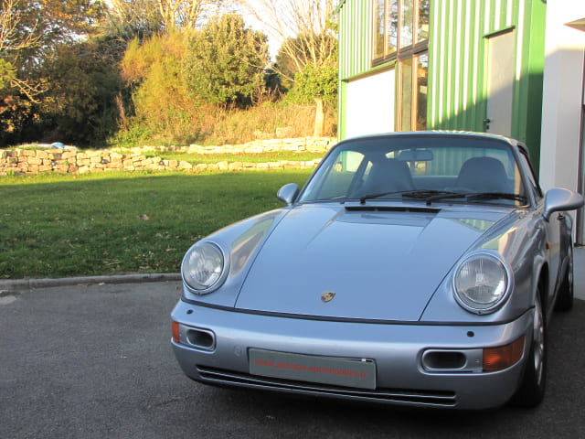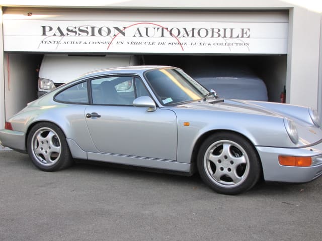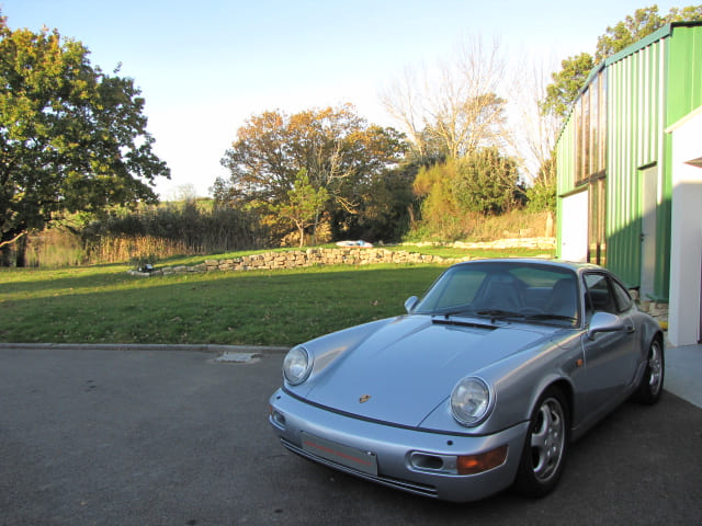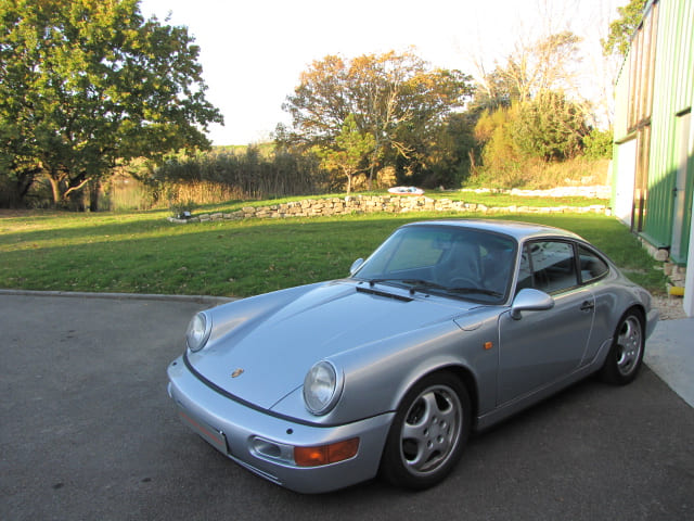 Porsche 964 carrera 4 totalisant 171500 km du 09/1991, gris-bleu métallisé, cuir noir.