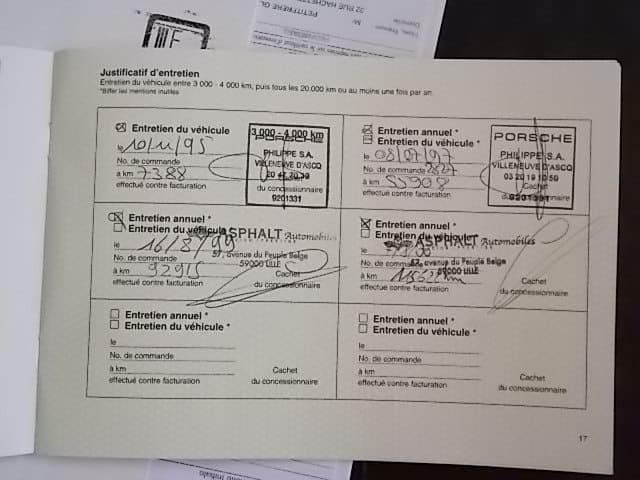 Dossier d\’entretien complet et carnet d\’origine Porsche à jour.