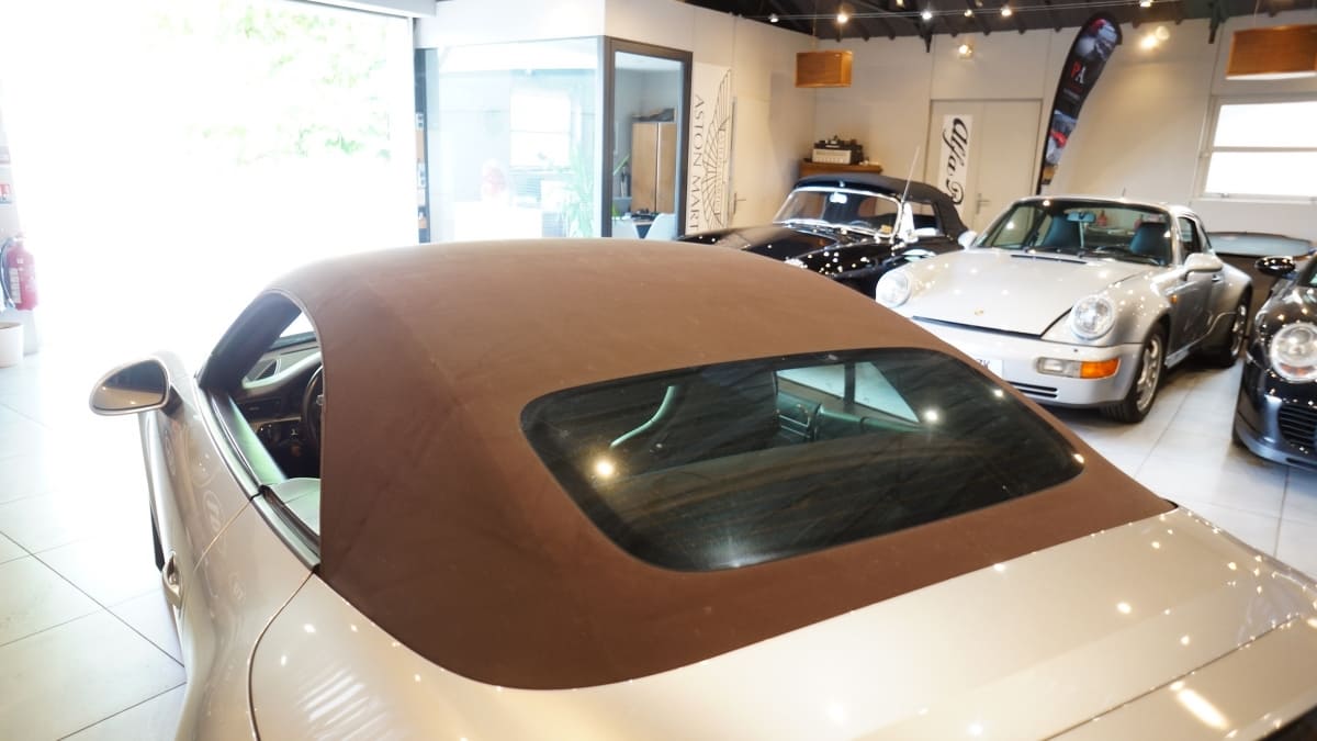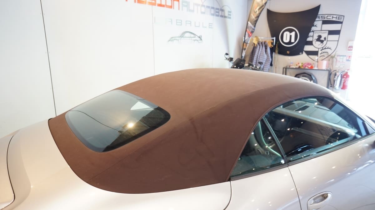 Argent platine métallisé, capote marron, intérieur tout cuir Expresso