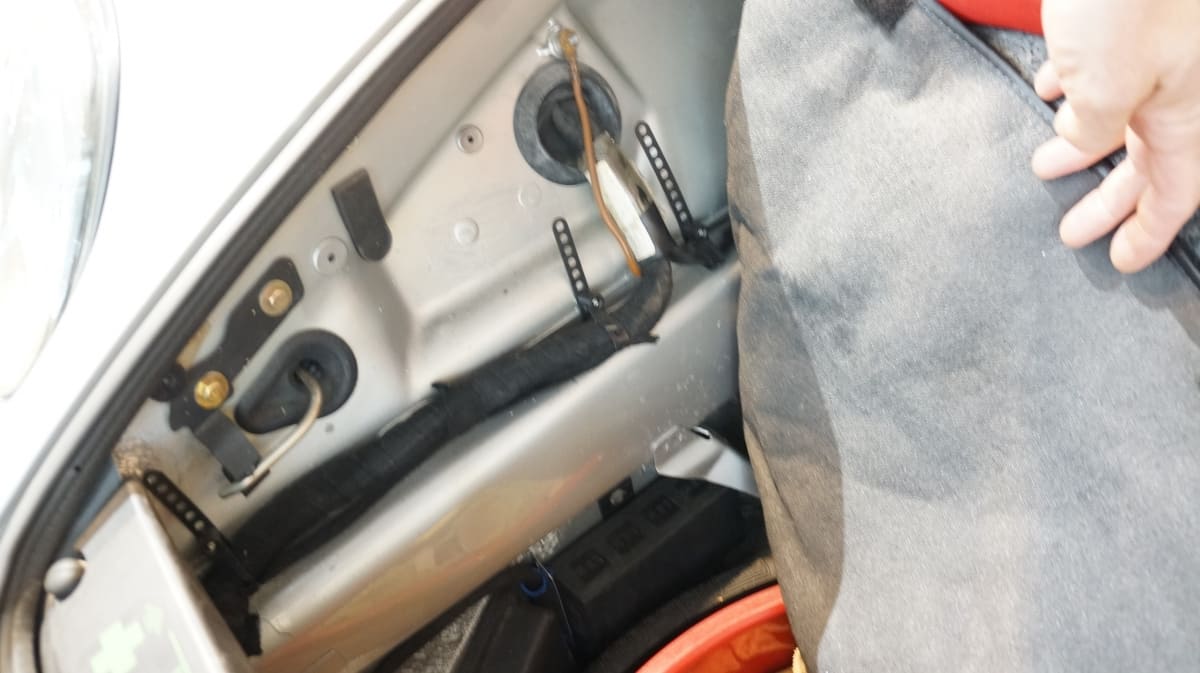Gris polaire, cuir étendu bleu marine, sièges sport, sièges chauffants, autobloquant, régulateur de vitesse, hifi sound system, climatisation, toit ouvrant, ordinateur de bord, radio CD Porsche, échappement inox.
