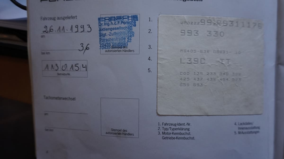 Porsche 993 Carrera 2 de Novembre 1993 totalisant 152000 km d\’origine.