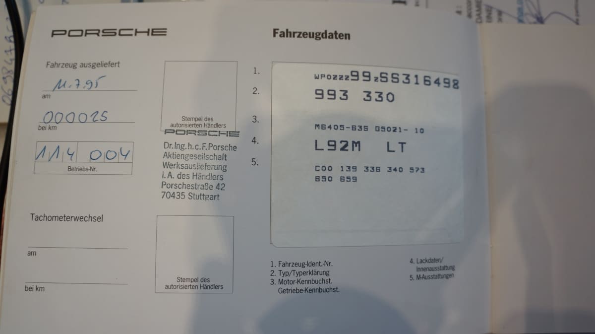 Porsche 993 Carrera 2 de juillet 1995 totalisant 125300 km d\’origine, boite mécanique 6 vitesses.