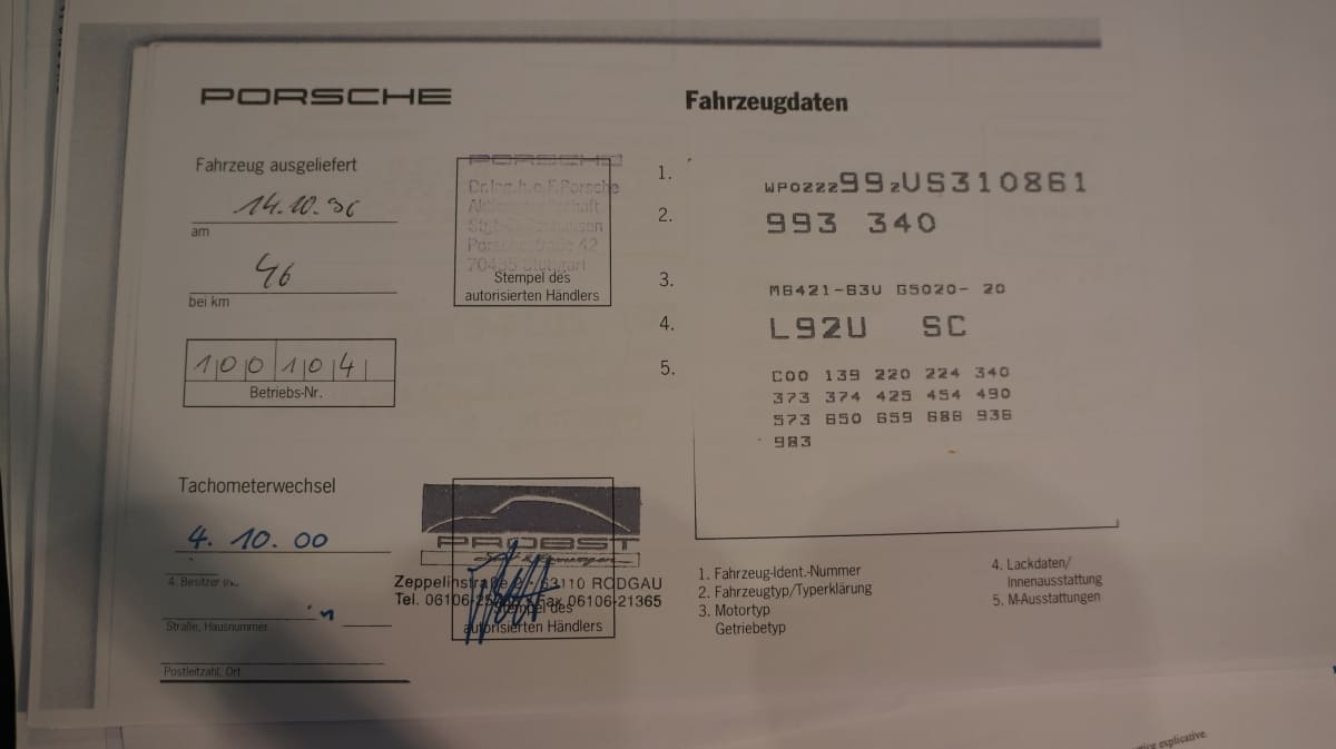 Porsche 993 S d\’octobre 1996 totalisant 151300 km.
