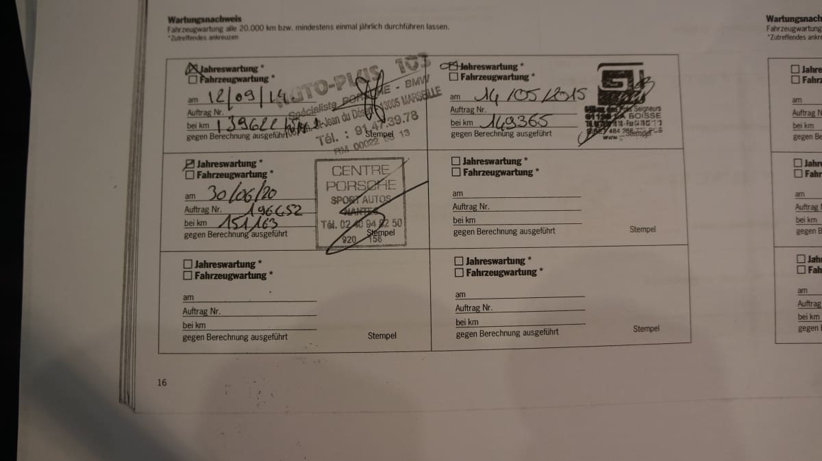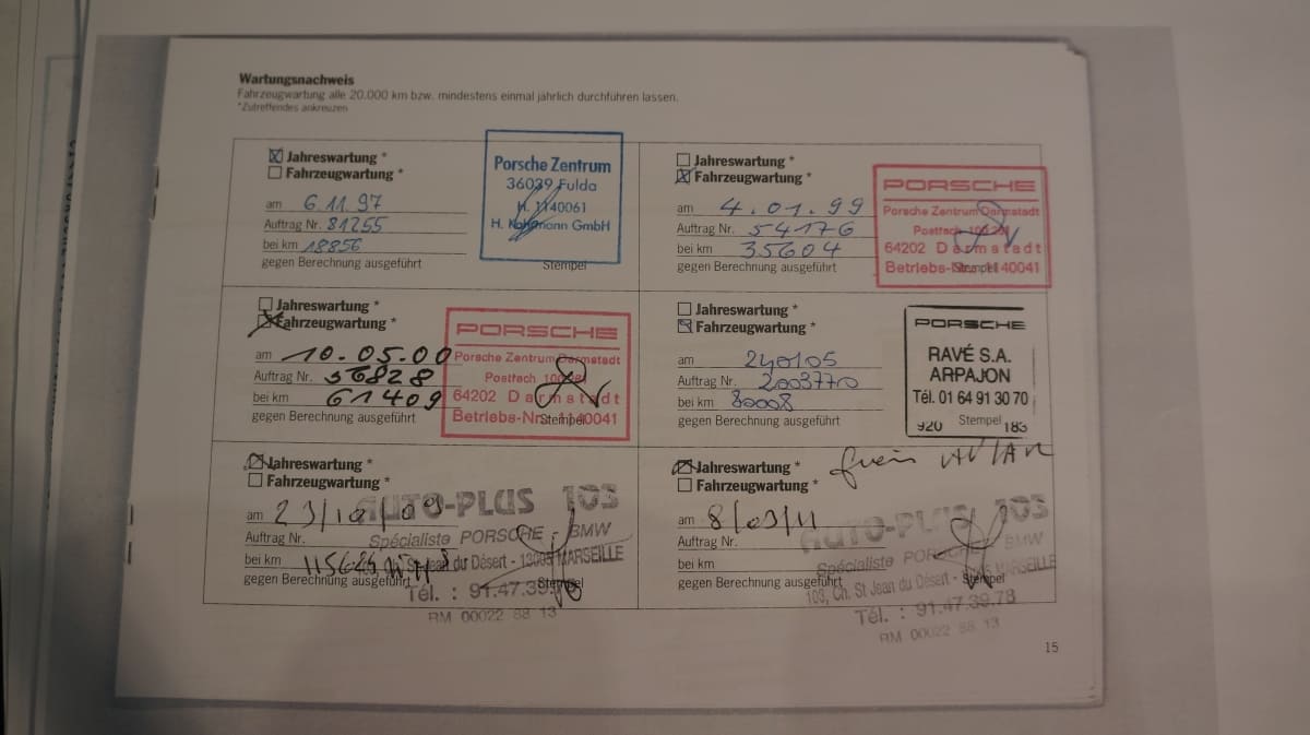 Carnet entretien et dossier de factures, dernier révision Centre Porsche Nantes à 151000 km