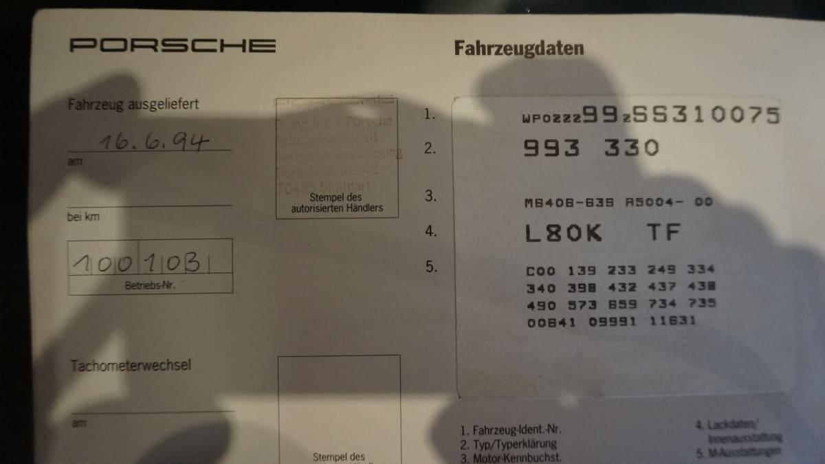 Porsche 993 tiptronic S de juin 1994 totalisant 192000 km.