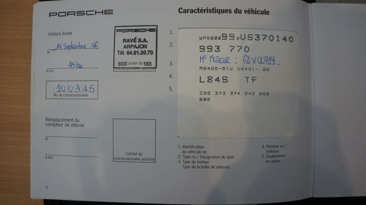 Porsche 993 Turbo de novembre 1996 totalisant 102500 km d\’origine.