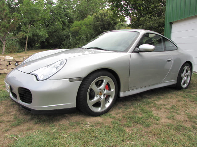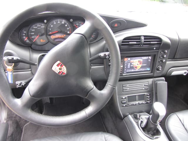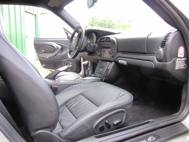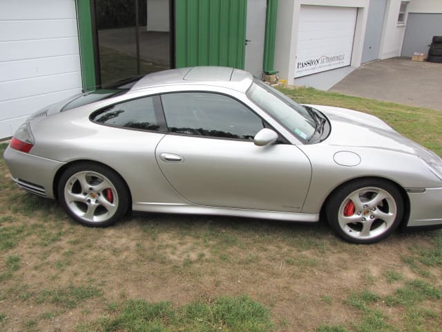 Porsche 996 4S de juin 2003 totalisant 75700 km, gris métallisé, cuir noir.