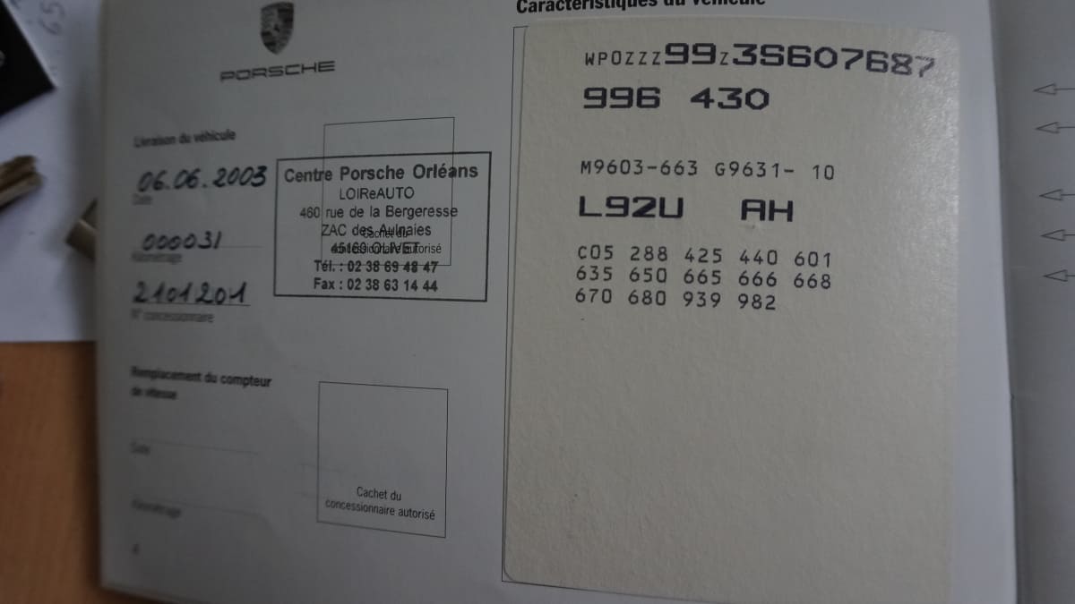 Origine France, entretien complet Porsche, moteur changé par Porsche en 2006 à 16200 km. Sort de révision Porsche.