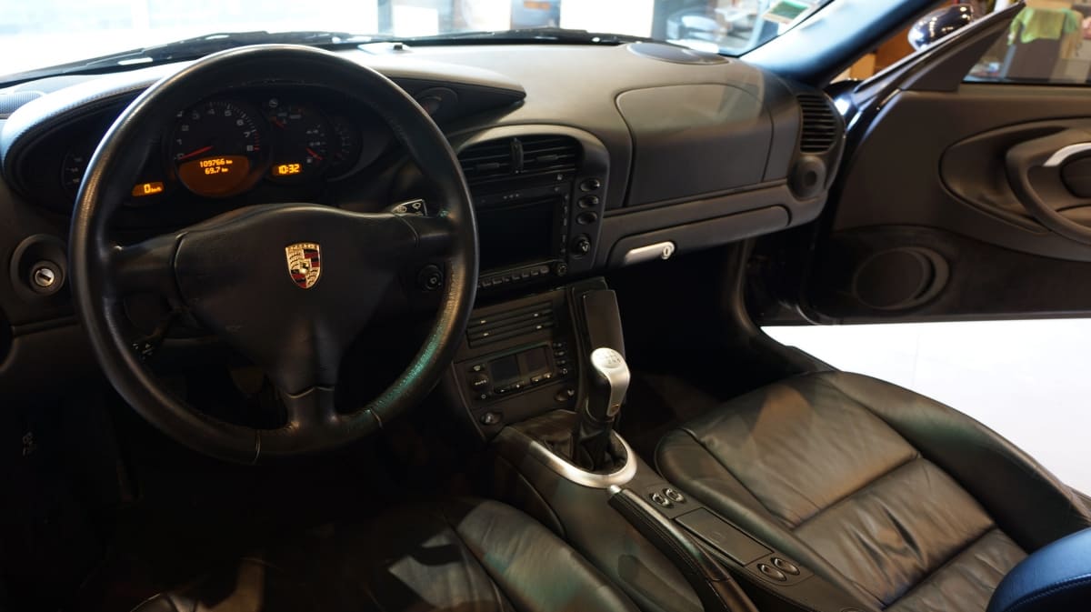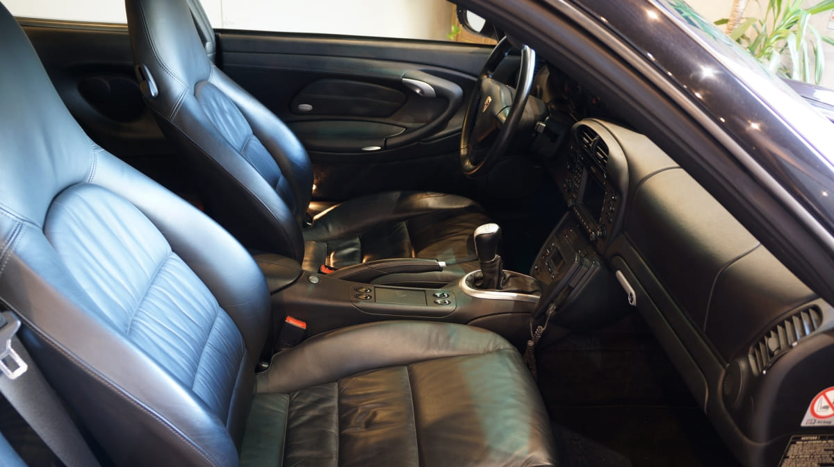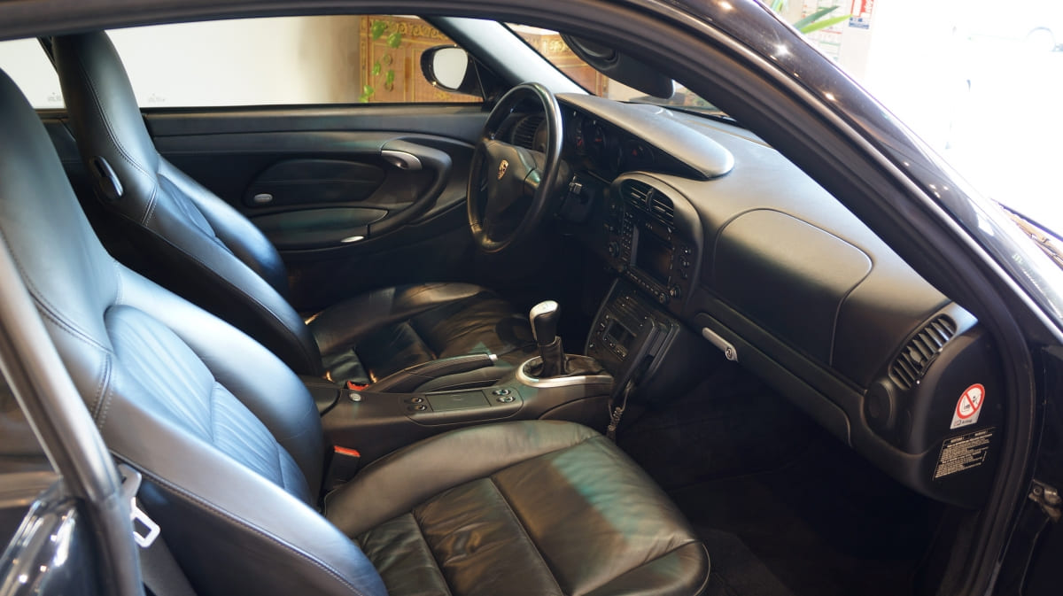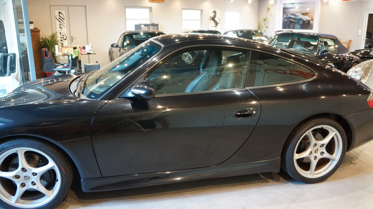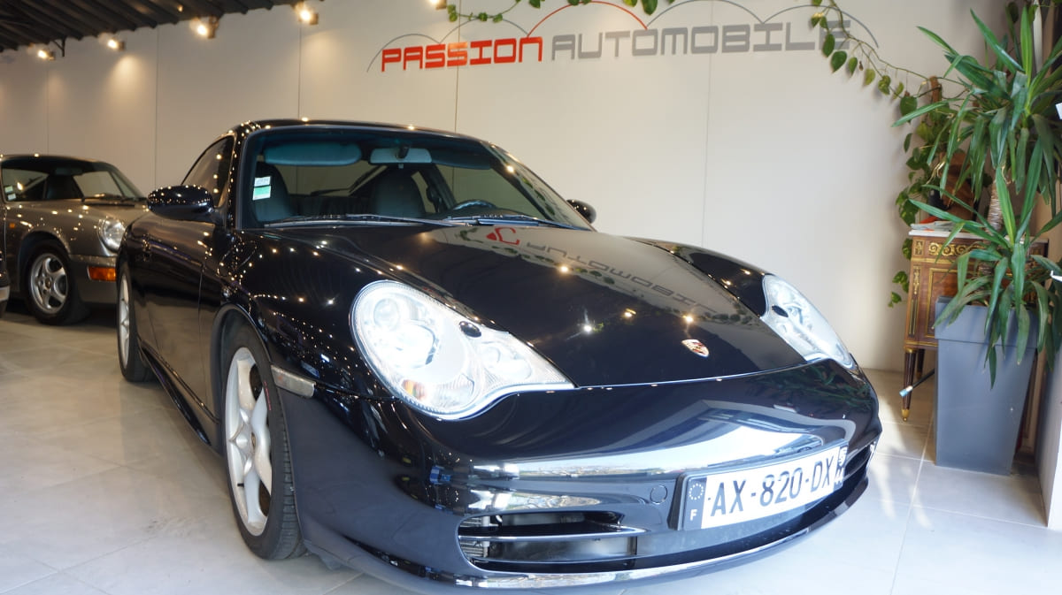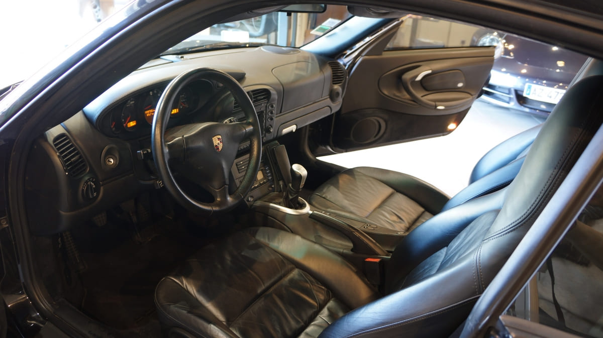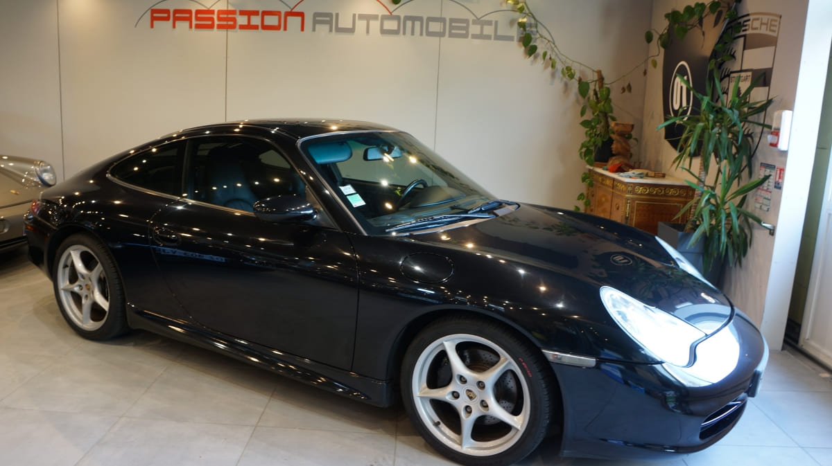 Porsche 996 Carrera 2, boite mécanique, noir métallisé, tout cuir noir.