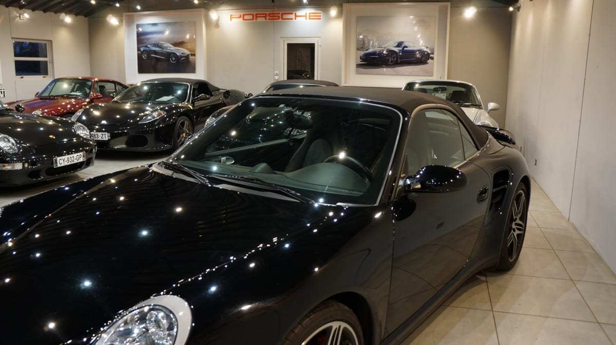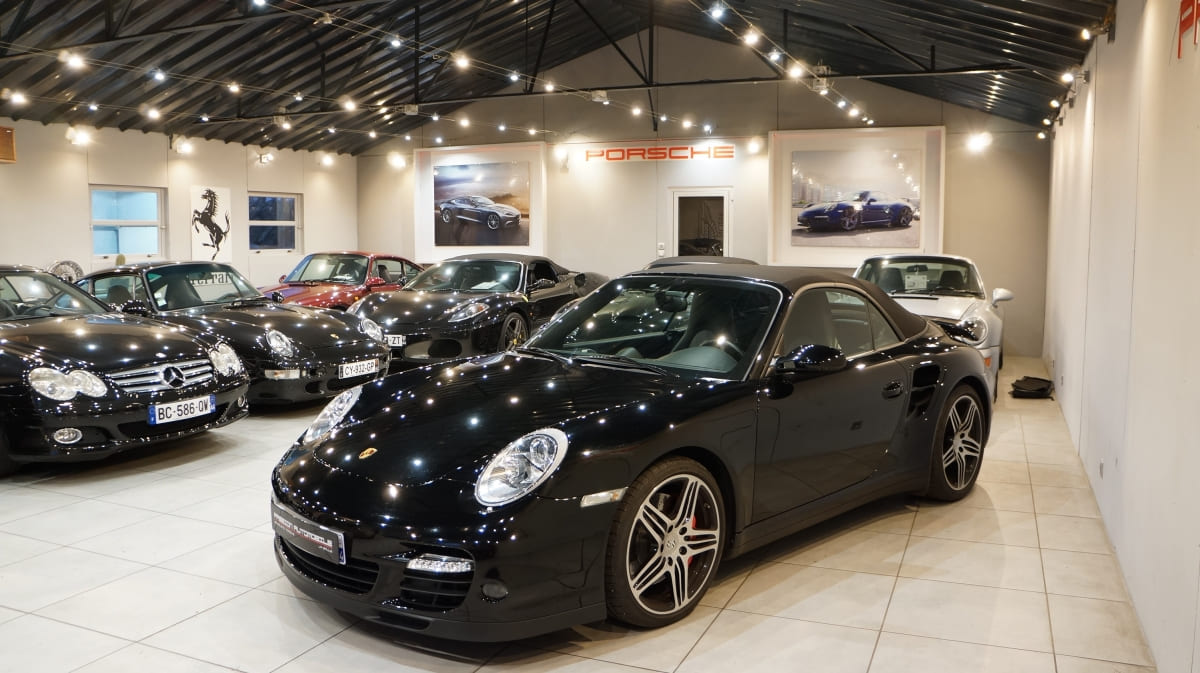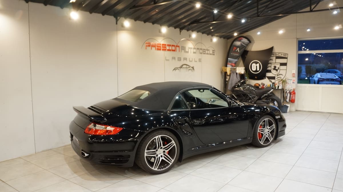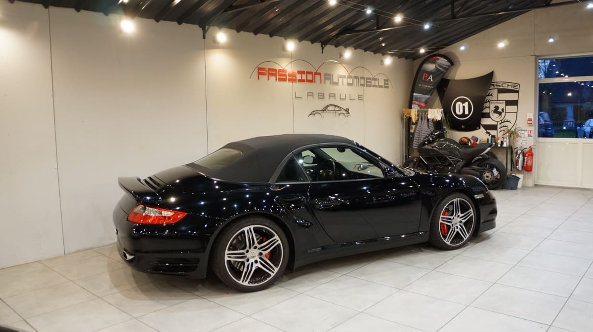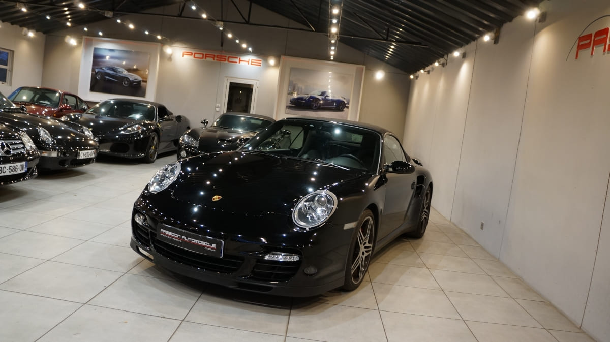 Porsche 997 Turbo Cabriolet de mai 2008 totalisant seulement 31300km d\’origine. Origine Allemagne en France depuis 06/2009