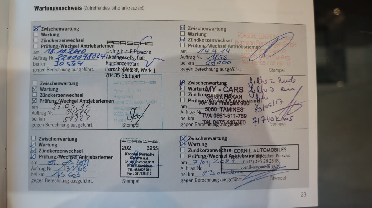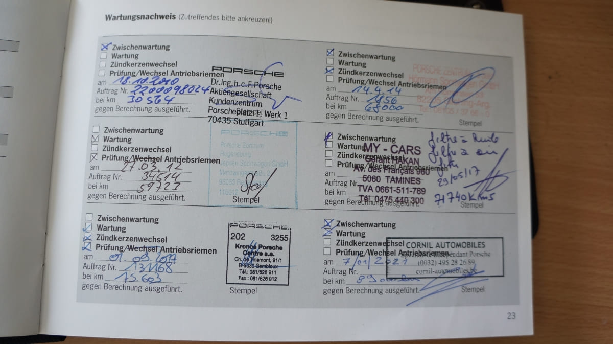 01/09/2017 : Entretien au Centre Porsche de Kronos (Belgique) à 75603 km (facture)