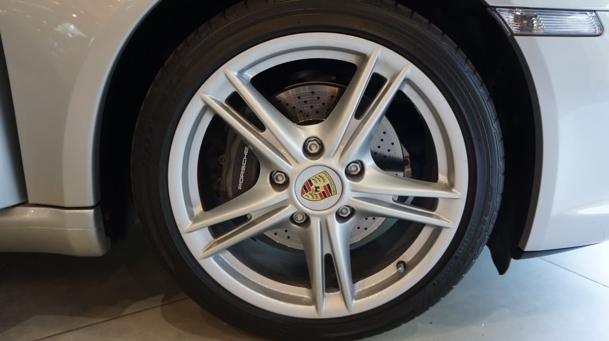 446 : Enjoliveurs de roues avec écussons Porsche de couleur (161 €).