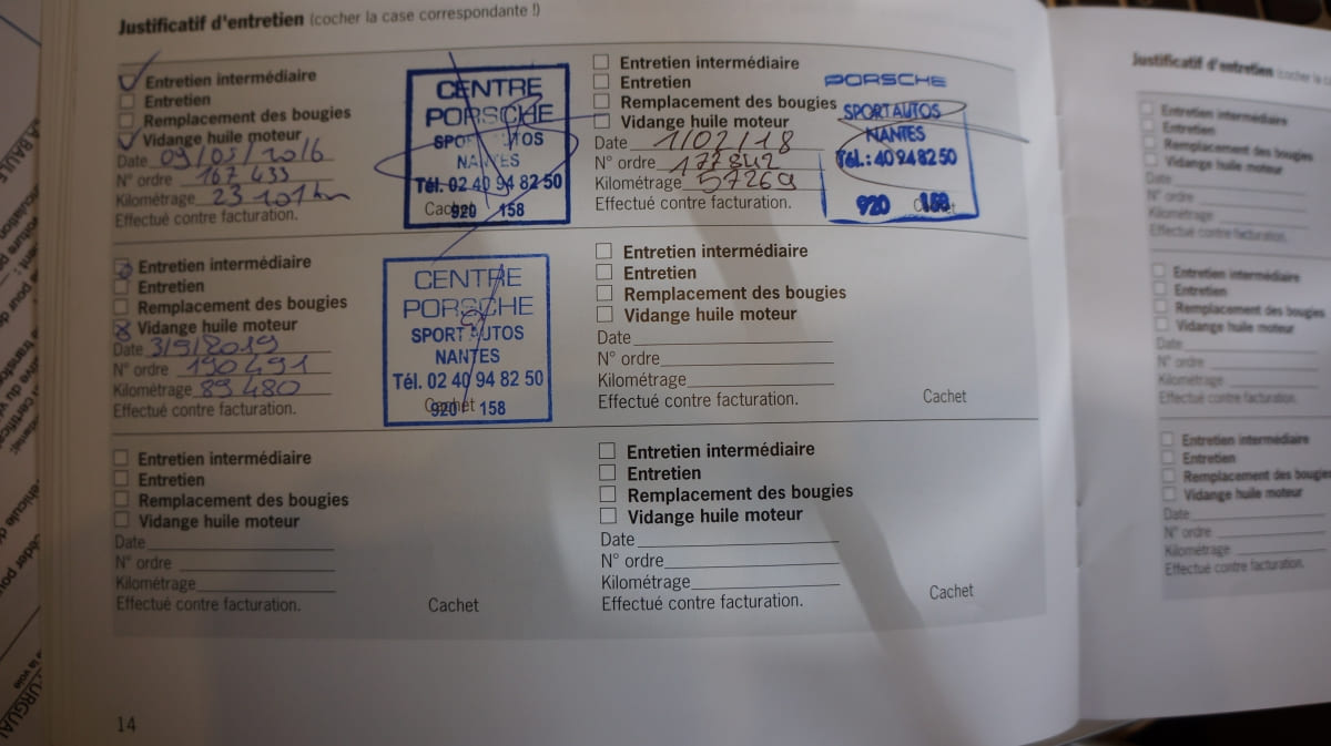 Origine Porsche Nantes, entretien 100% Porsche, révision des 120000 km effectuée pour la vente