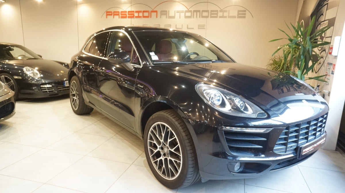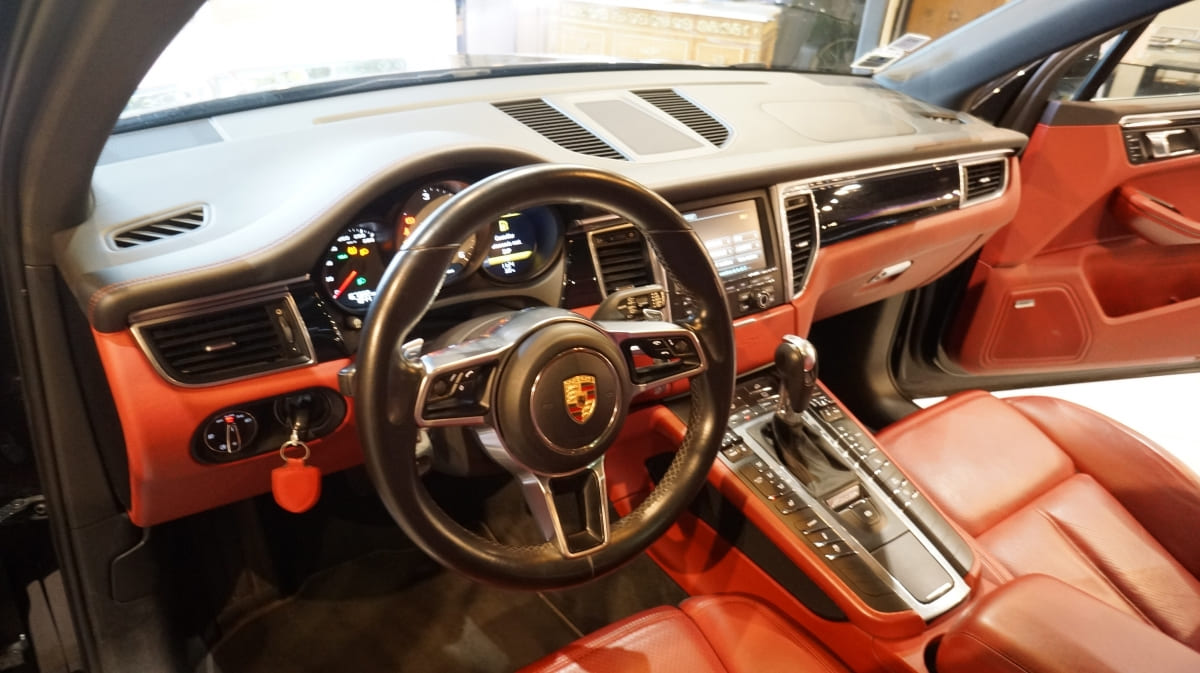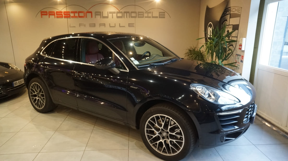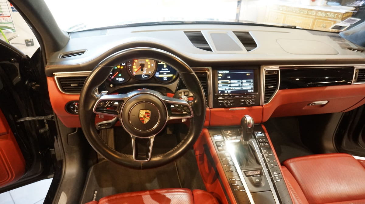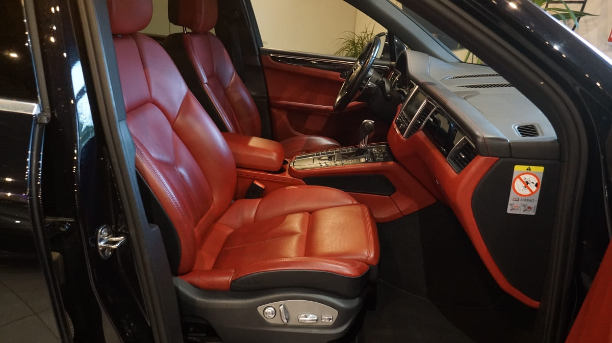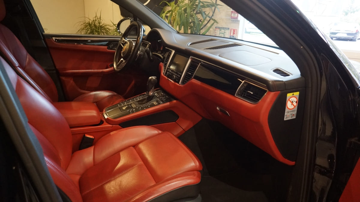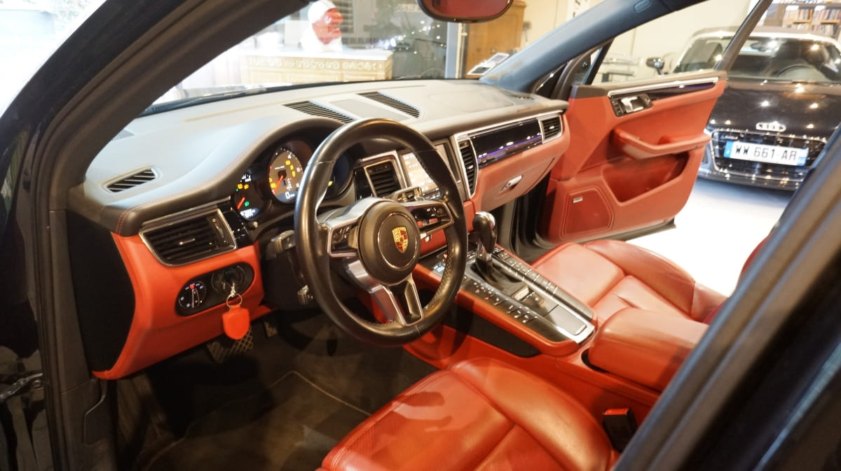 Porsche Macan SD de juin 2014 totalisant 167300 km, noir, intérieur tout cuir rouge et noir, surpiqures rouge.