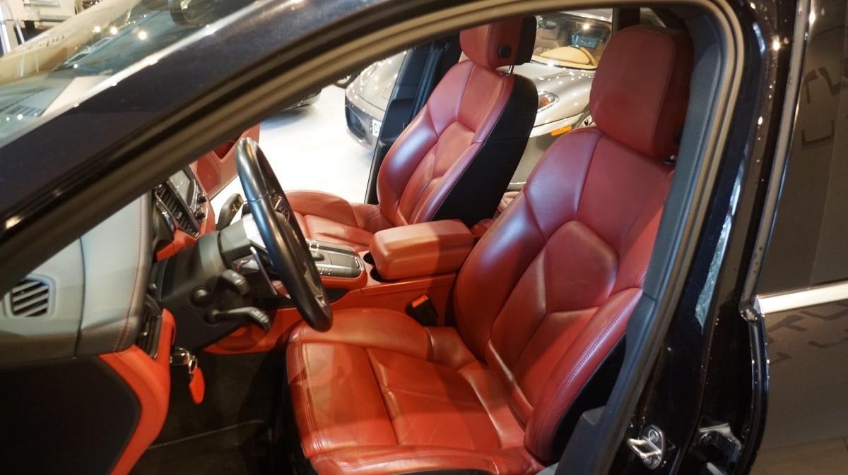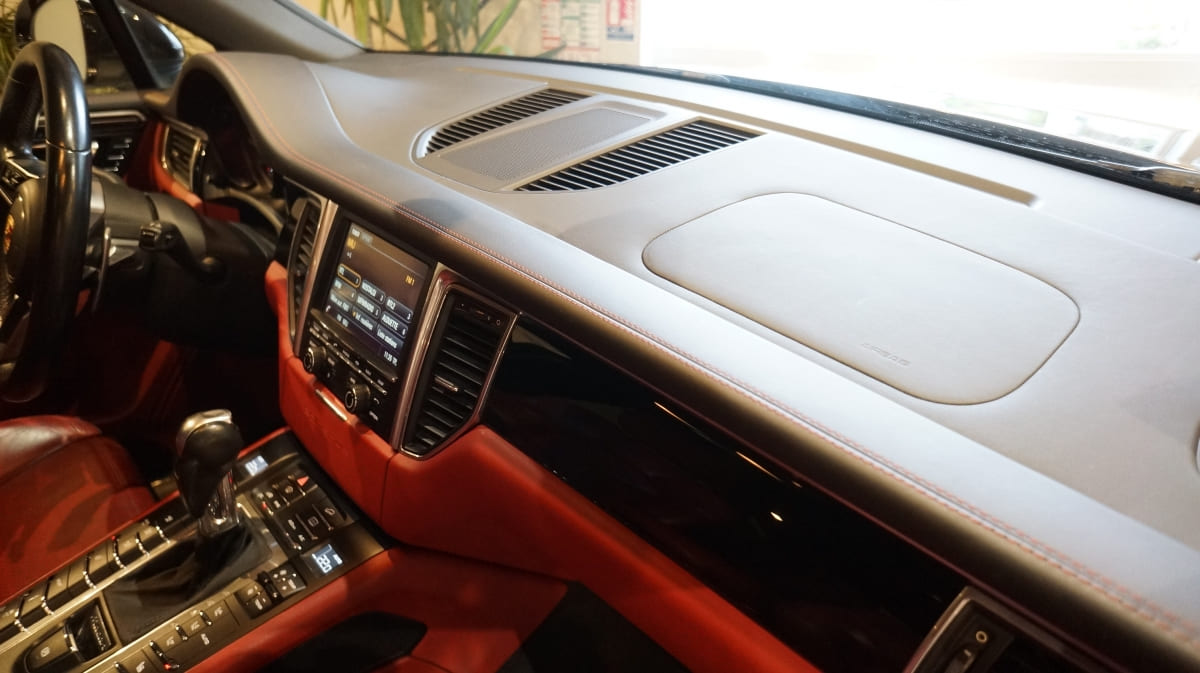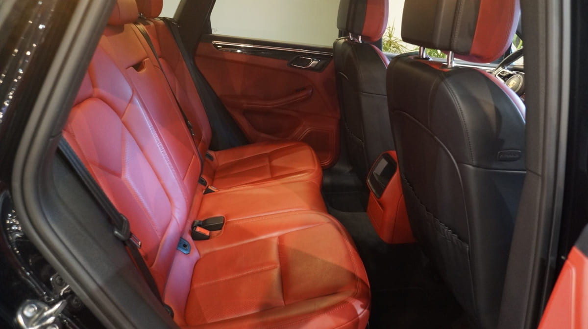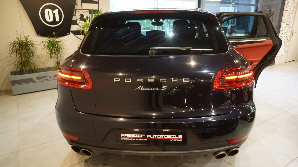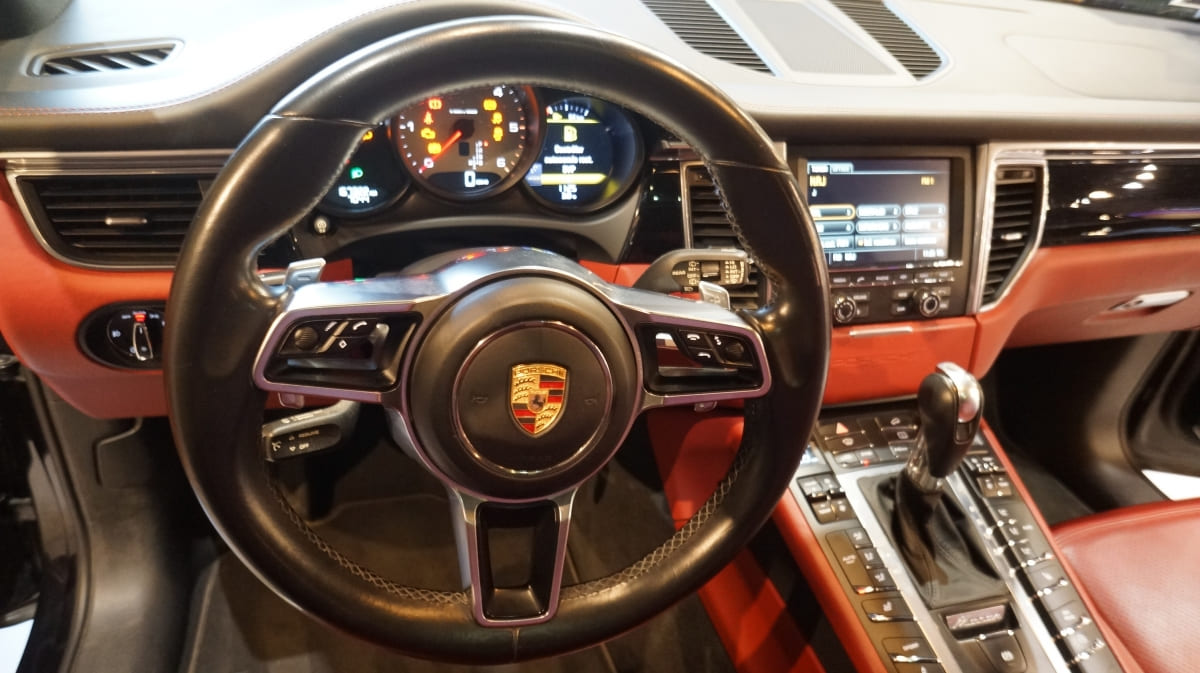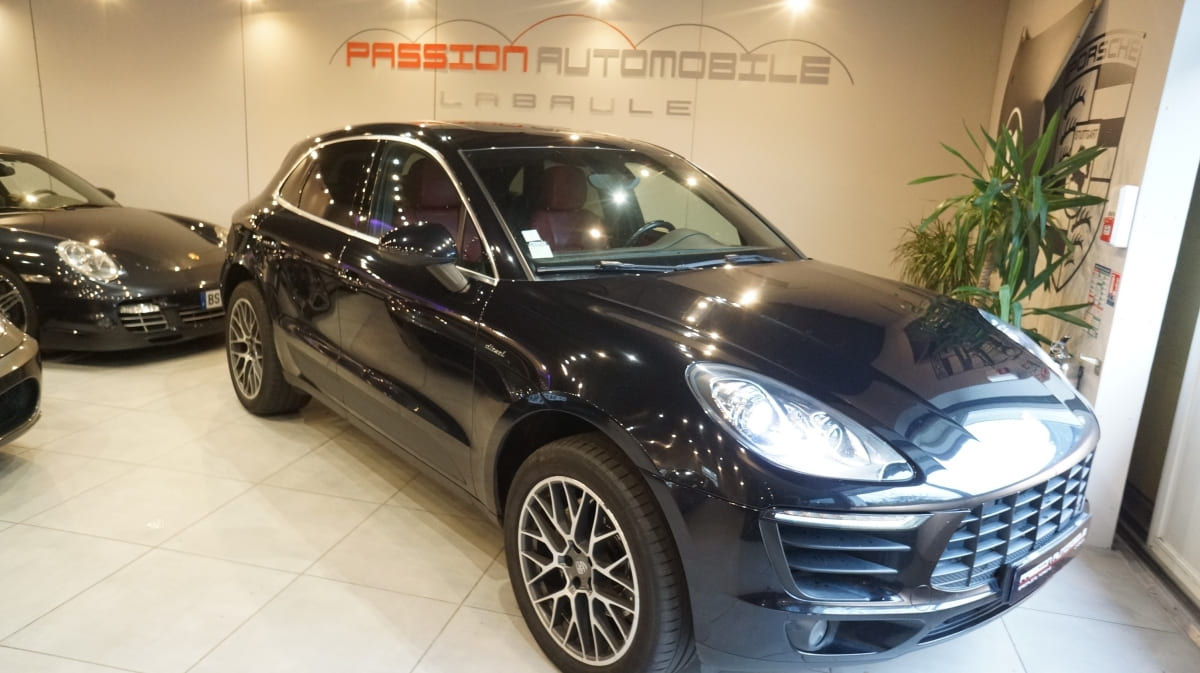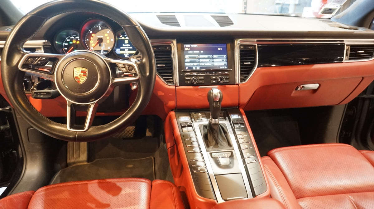 Porsche Macan SD de juin 2014 totalisant 167300 km, noir, intérieur tout cuir rouge et noir, surpiqures rouge.