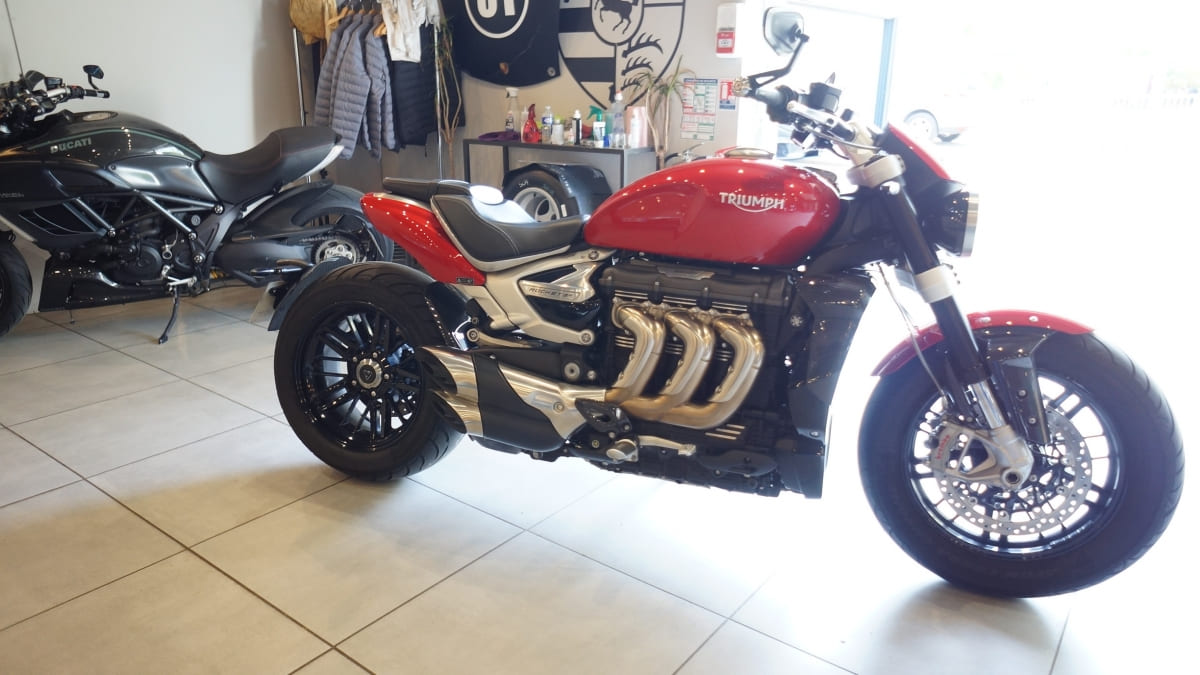 Triumph Rocket 3 R d\’octobre 2021 totalisant 10500km.